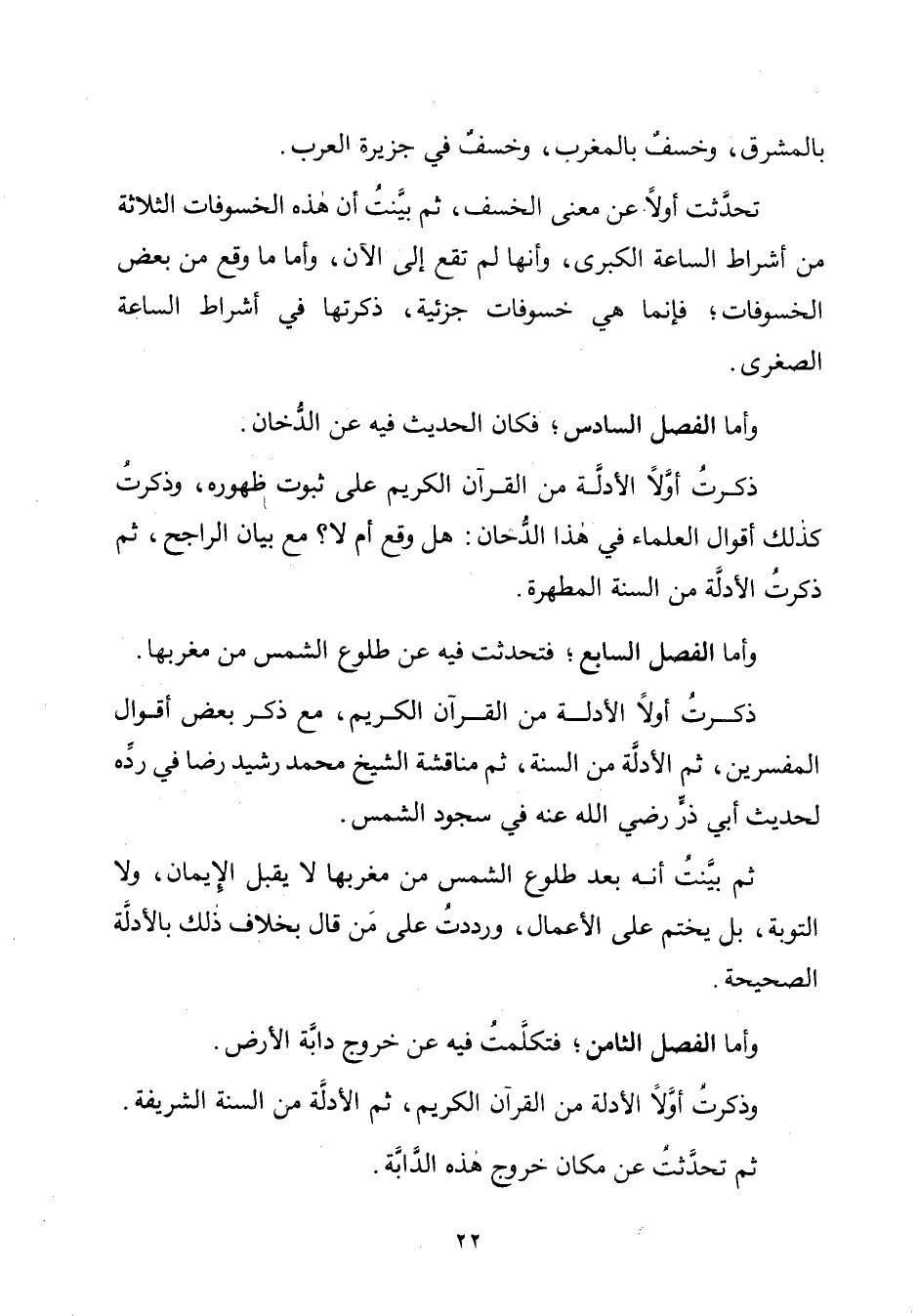 وأمّا الفصل الثّامن؛ فتكلَّمتُ فيه عن خروج دابَّة الأرض.