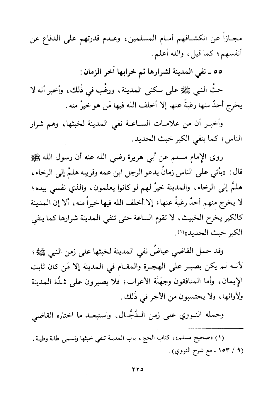 (¬١) "صحيح مسلم"، كتاب الحجِّ، باب المدينة تنفي خبثها وتسمى طابة وطيبة، (٩/ ١٥٣ - مع شرح النووي).