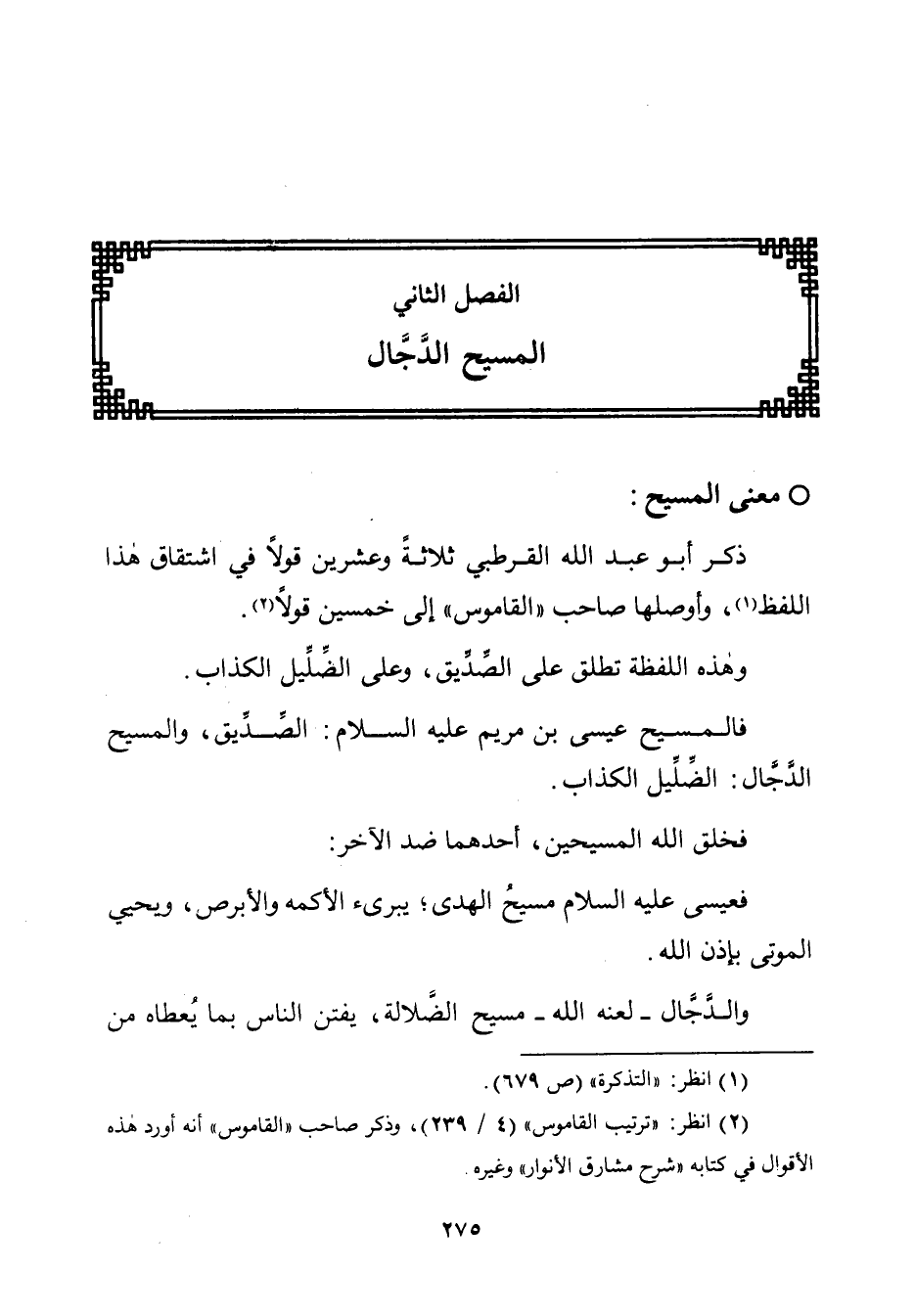 فالمسيح عيسى بن مريم -عليه السّلام-: الصِّدِّيق، والمسيح الدَّجّال: الضِّلِّيل الكذاب.