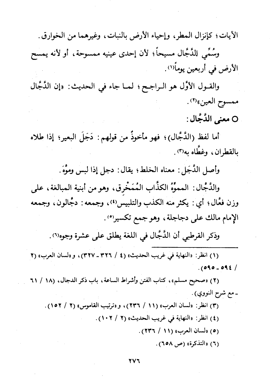 وذكر القرطبي أن الدَّجّال في اللُّغة يطلق على عشره وجوه (¬٦).