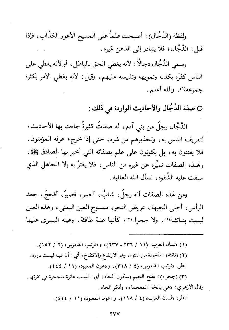 ولفظة (الدَّجّال): أصبحت علمًا على المسيح الأعور الكذَّاب، فإذا قيل: الدَّجّال؛ فلا يتبادر إلى الذهن غيره.