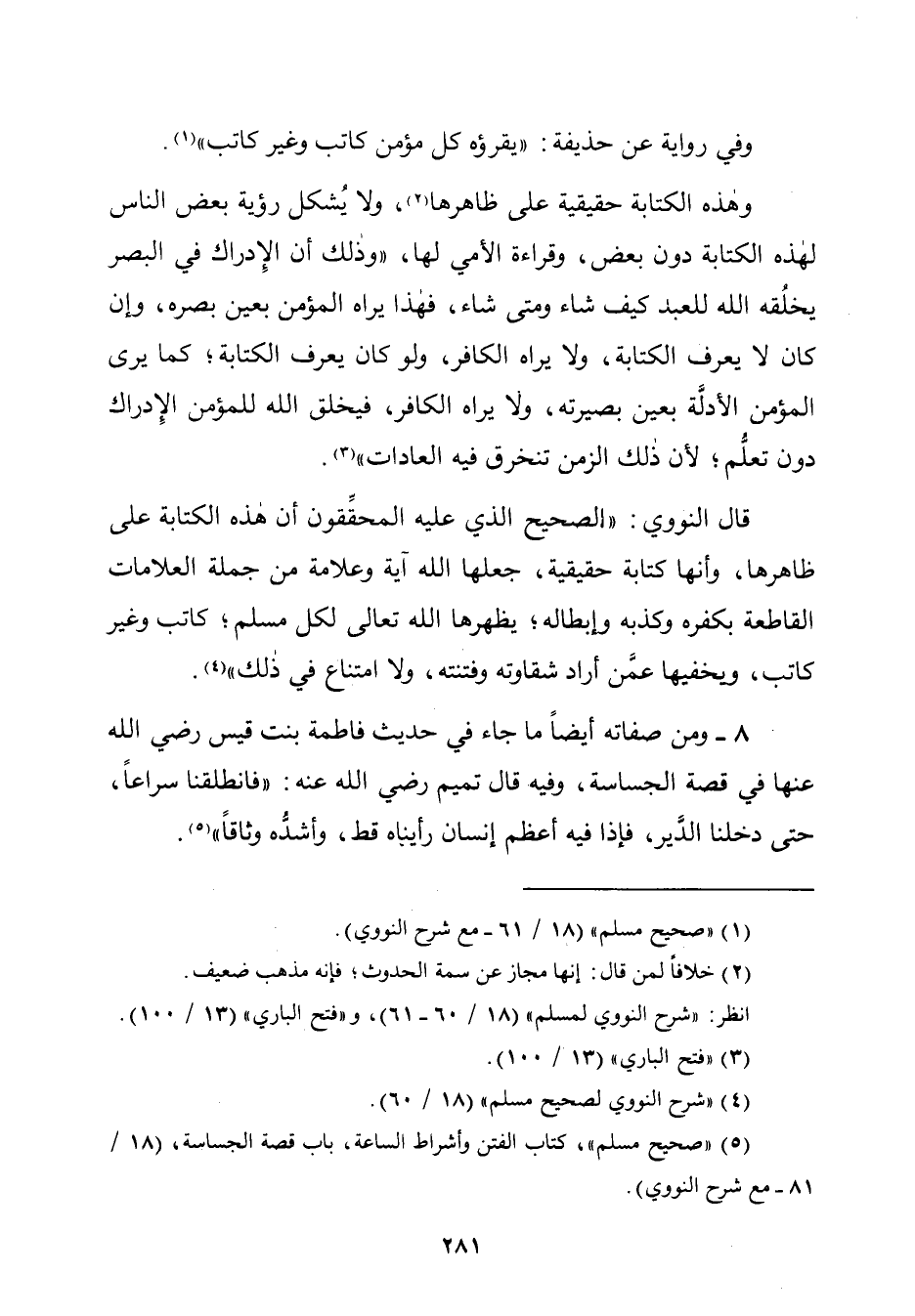 (¬٥) "صحيح مسلم"، كتاب الفتن وأشراط السّاعة، باب قصة الجساسة، (١٨/ ٨١ - مع شرح النووي).
