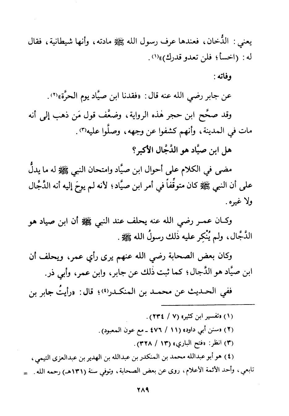 عن جابر رضي الله عنه قال: "فقدنا ابن صيَّاد يوم الحرَّة" (¬٢).