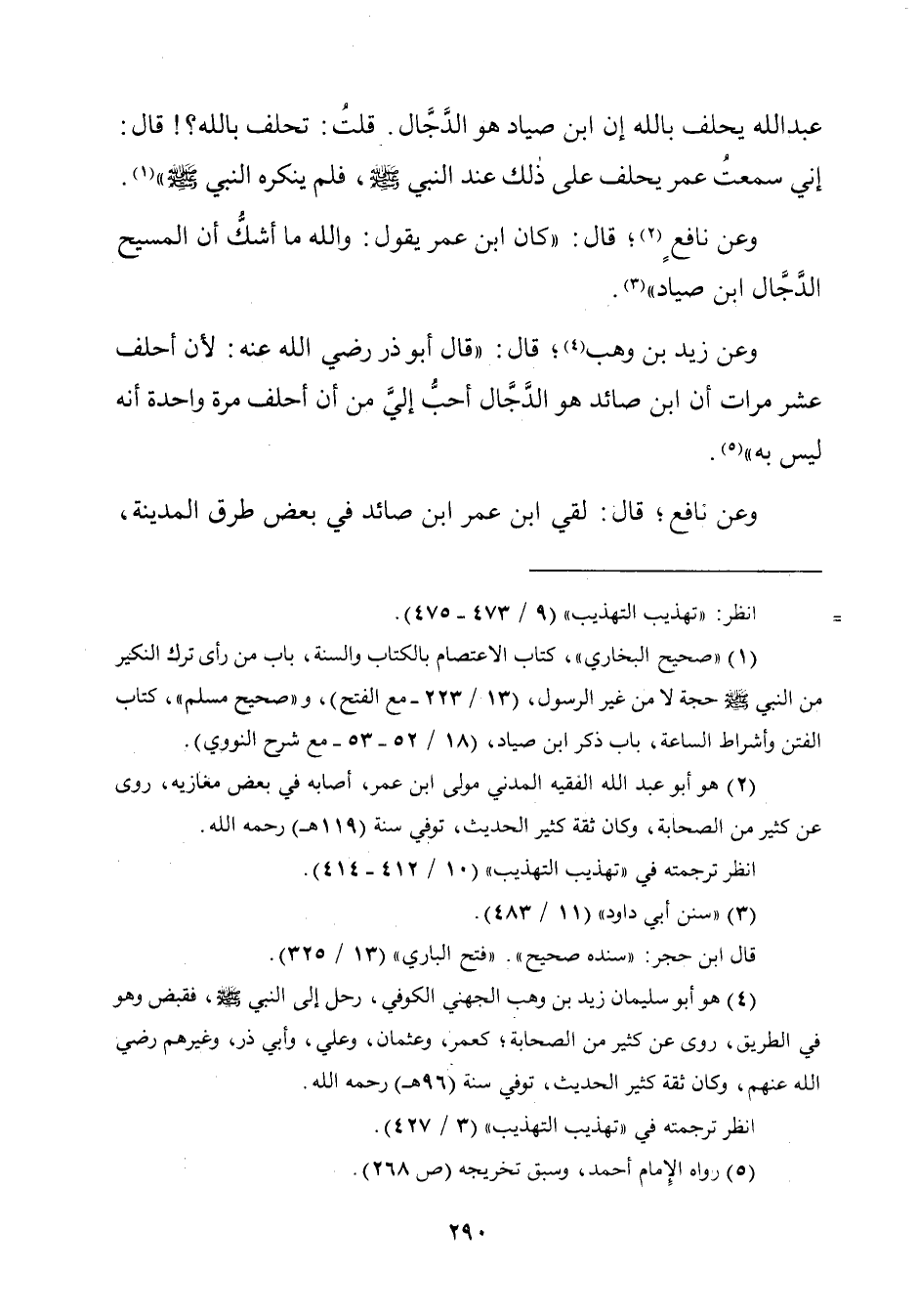 وعن زيد بن وهب (¬٤)؛ قال: "قال أبو ذر رضي الله عنه: لأنَّ أحلف عشر مرات أن ابن صائد هو الدَّجّال أحبُّ إليَّ من أن أحلف مرّة واحدة أنّه ليس به" (¬٥).