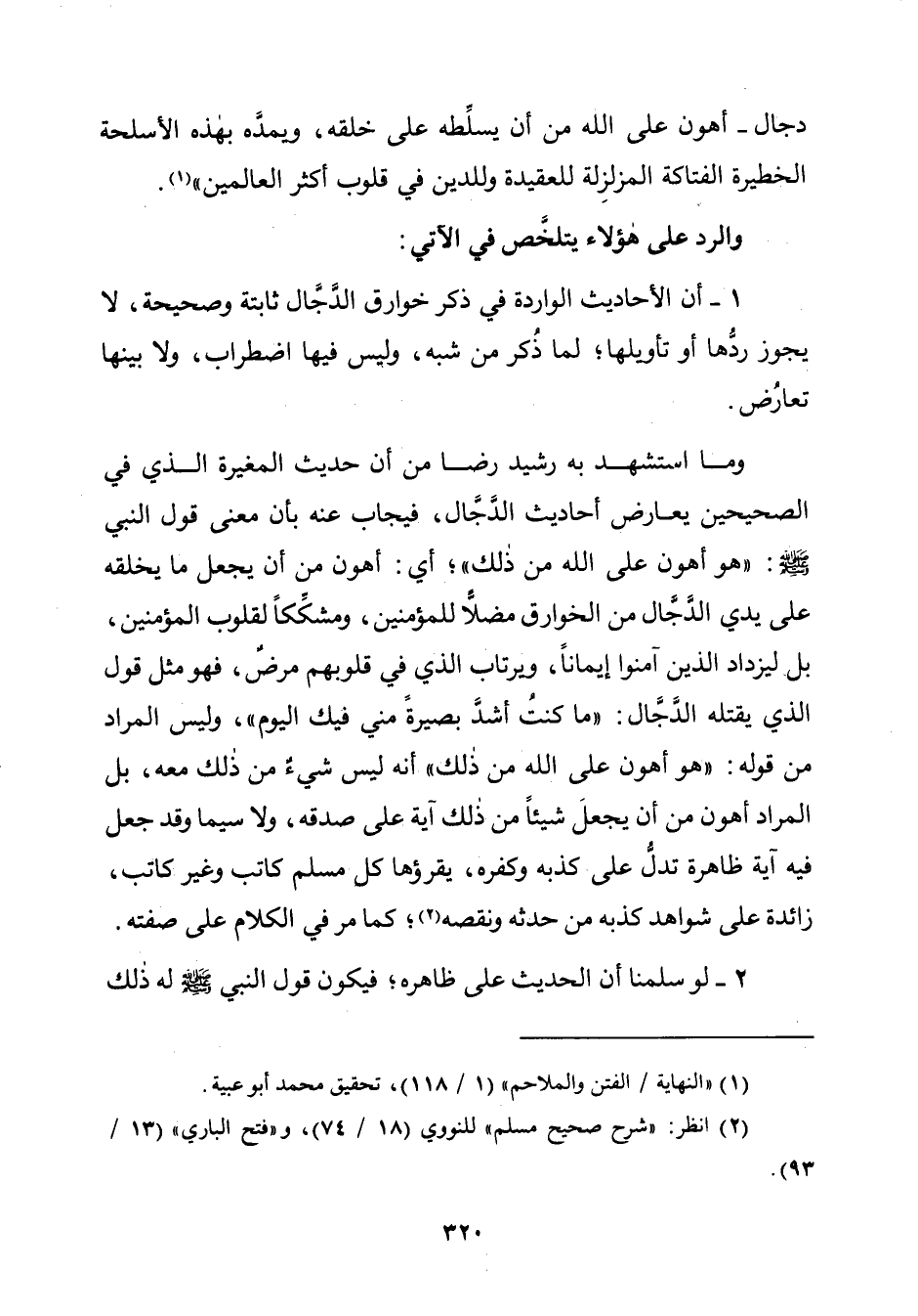 دجال - أهون على الله من أن يسلِّطه على خلقه، ويمدَّه بهذه الأسلحة الخطيرة الفتاكة المزلزِلة للعقيدة وللدين في قلوب أكثر العالمين" (¬١).