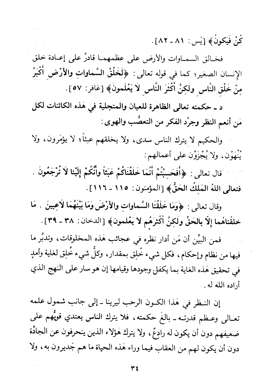 د - حكمته تعالى الظاهرة للعيان والمتجلية في هذه الكائنات لكل مَنْ أنعم النظر وجرَّد الفكر من التعصُّب والهوى: