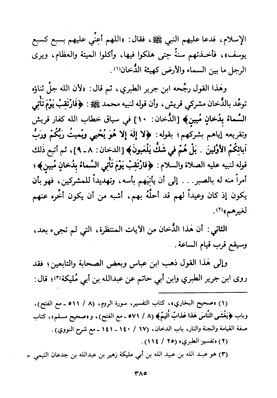 (¬١) "صحيح البخاريّ"، كتاب التفسير، سورة الروم، (٨/ ٥١١ - مع الفتح)، وباب {يَغْشَى النَّاسَ هَذَا عَذَابٌ أَلِيمٌ} (٨/ ٥٧١ - مع الفتح)، و"صحيح مسلم"، كتاب صفة القيامة والجنة والنار، باب الدخان، (١٧/ ١٤٠ - ١٤١ - مع شرح النووي).
