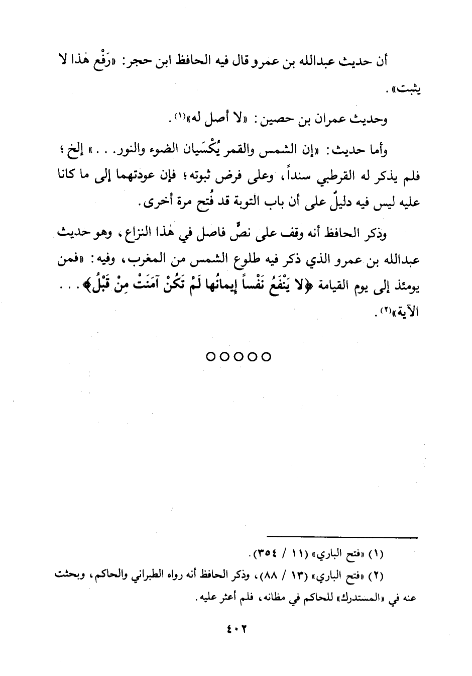 (¬٢) "فتح الباري" (١٣/ ٨٨)، وذكر الحافظ أنه رواه الطبراني والحاكم، وبحثت عنه في "المستدرك" للحاكم في مظانه، فلم أعثر عليه.