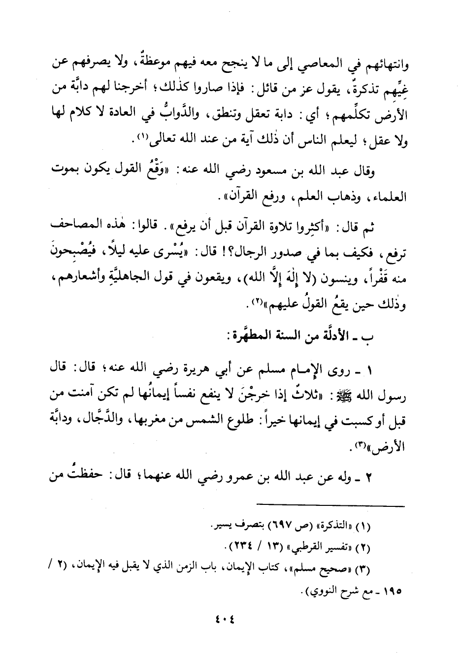 (¬٣) "صحيح مسلم"، كتاب الإِيمان، باب الزمن الّذي لا يقبل فيه الإِيمان، (٢/ ١٩٥ - مع شرح النووي).