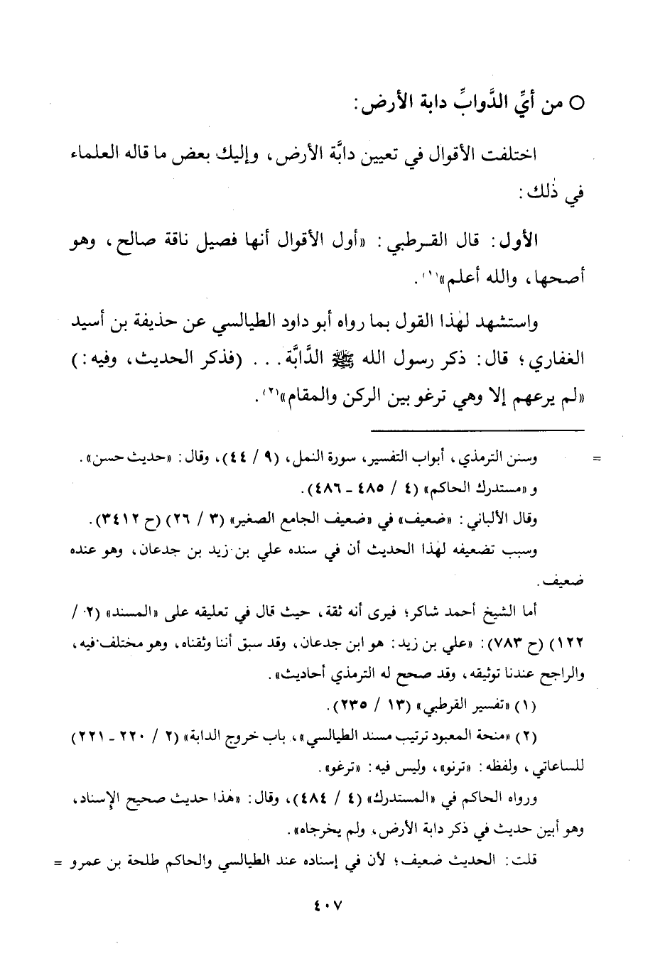 ورواه الحاكم في "المستدرك" (٤/ ٤٨٤)، وقال: "هذا حديث صحيح الإِسناد، وهو أبين حديث في ذكر دابة الأرض، ولم يخرجاه".