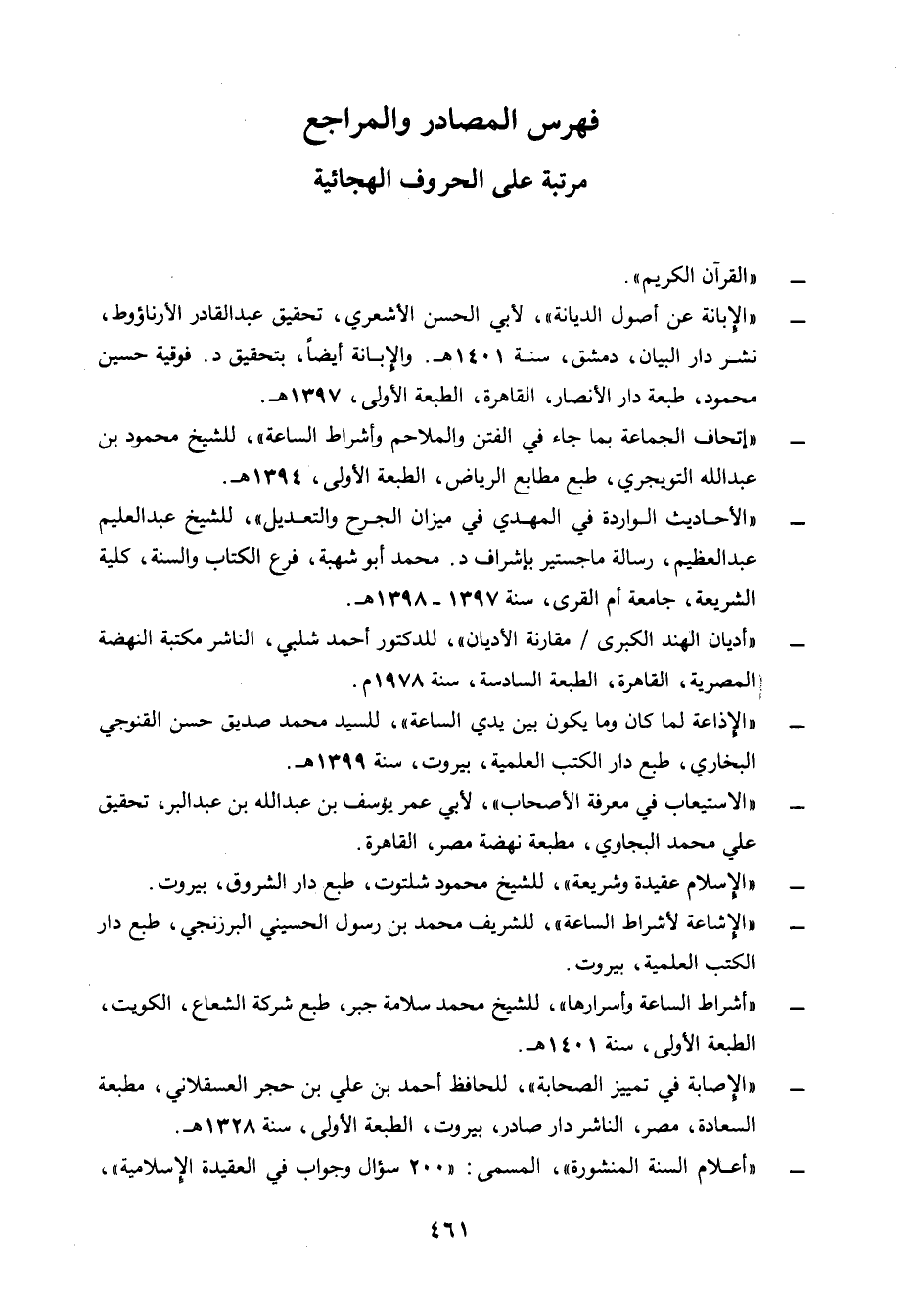 - "إتحاف الجماعة بما جاء في الفتن والملاحم وأشراط السّاعة"، للشيخ محمود بن عبد الله التويجري، طبع مطابع الرياض، الطبعة الأولى، ١٣٩٤ هـ.