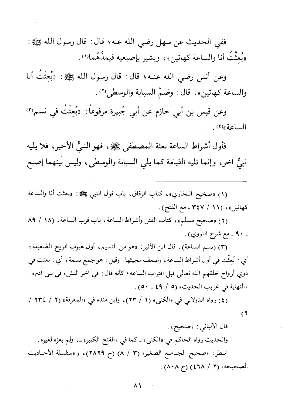 (¬٢) "صحيح مسلم"، كتاب الفتن وأشراط السّاعة، باب قرب السّاعة، (١٨/ ٨٩ - ٩٠ - مع شرح النووي).