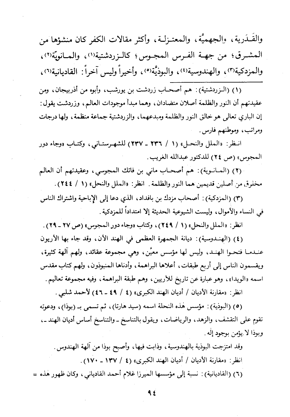 (¬٣) (المزدكية): أصحاب مزدك بن بافداد، الّذي دعا إلى الإباحية واشتراك النَّاس في النِّساء والأموال، وليست الشيوعية الحديثة إِلَّا امتدادًا للمزدكية.