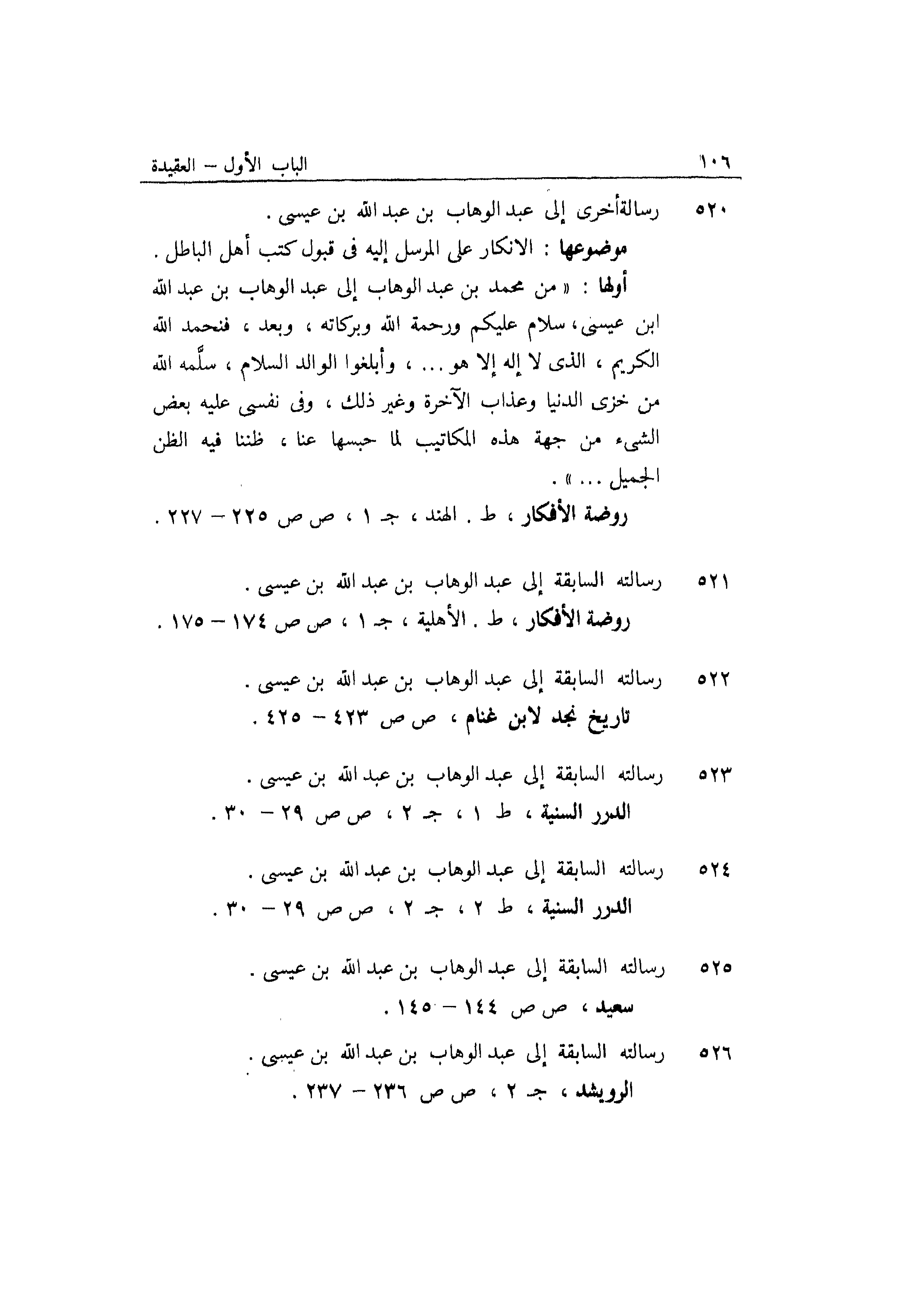 526 رسالته السابقة إلى عبد الوهاب بن عبد الله بن عيسى.