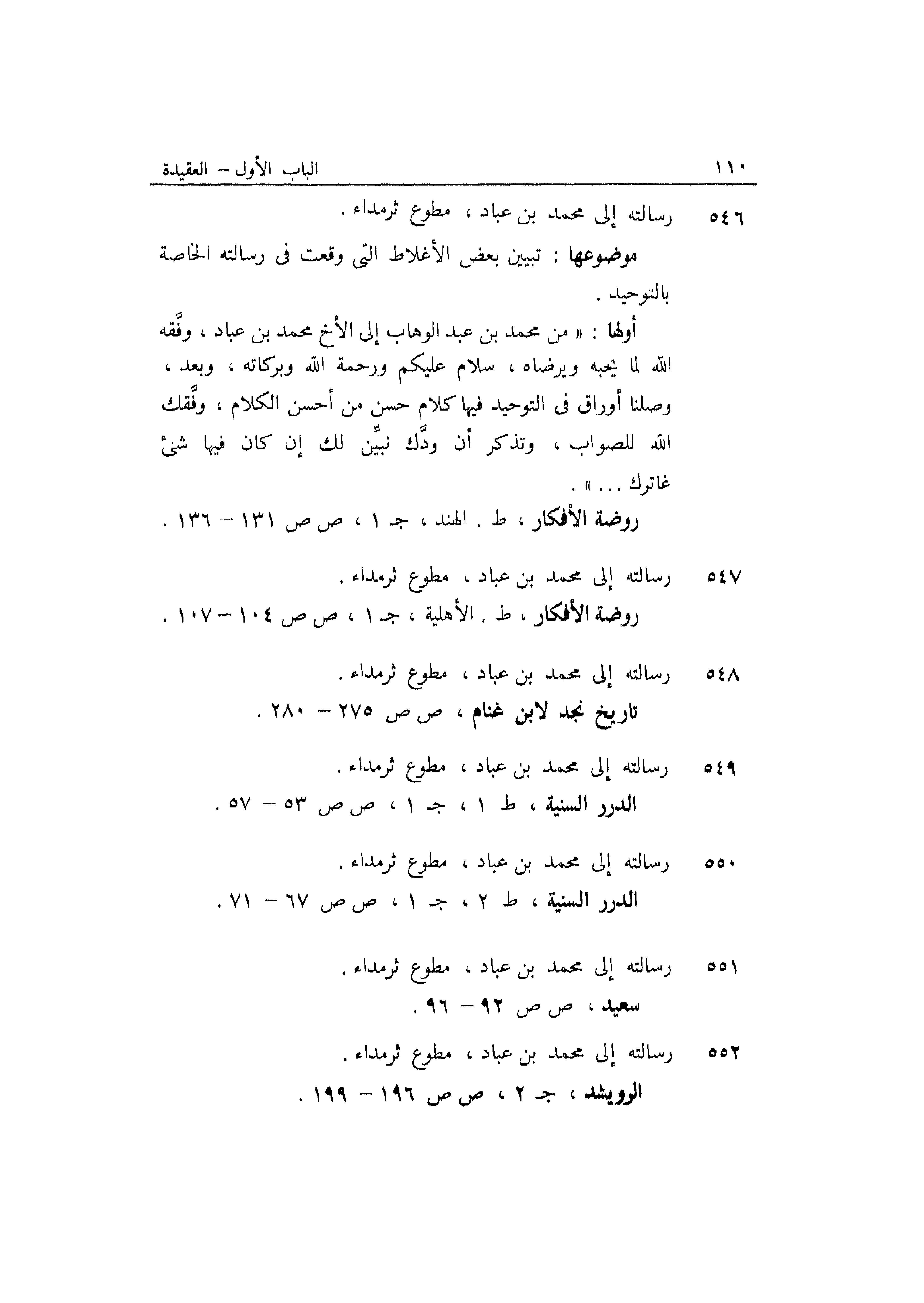 الدرر السنية، ط2، جـ1، ص ص 67-71.