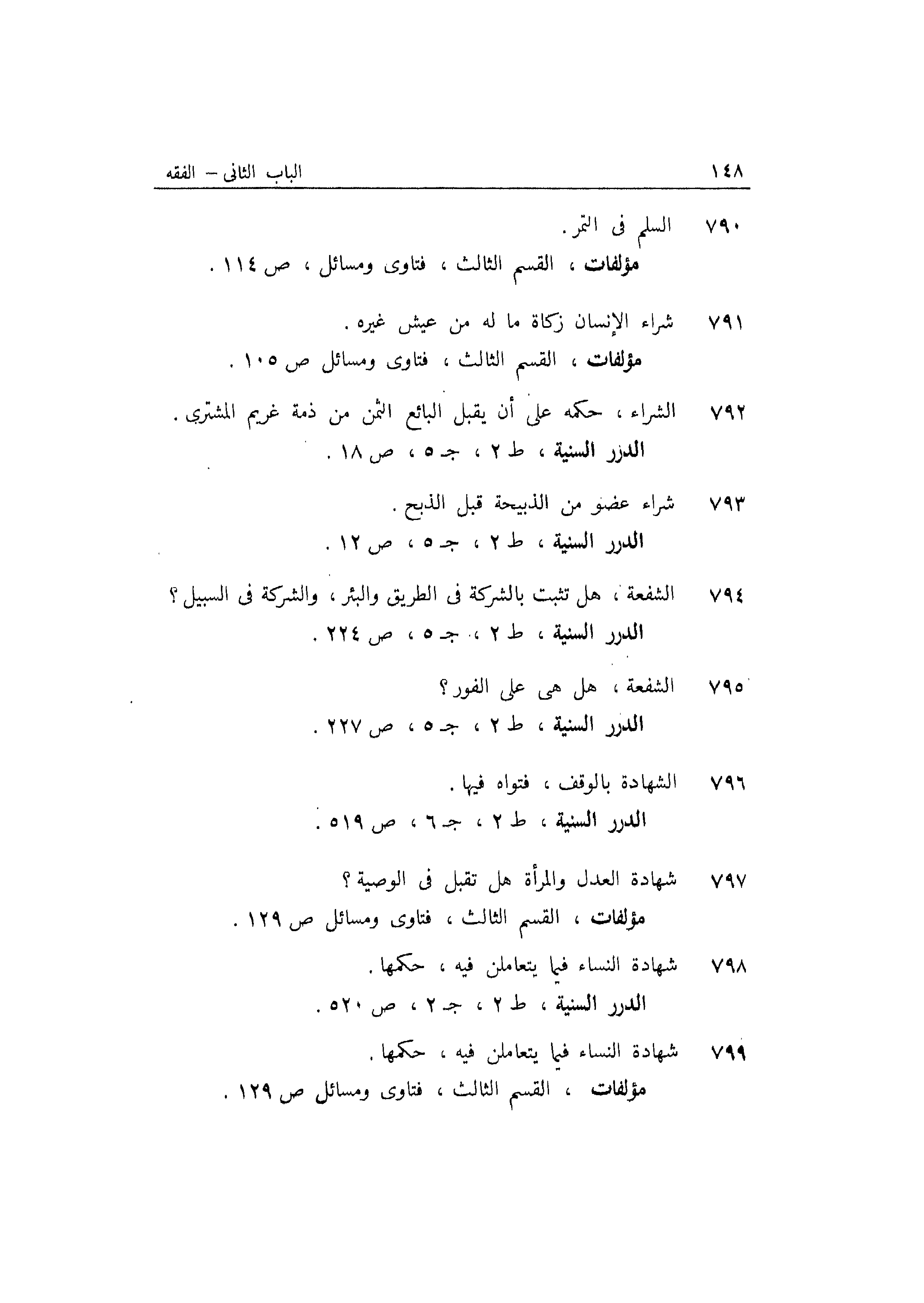 مؤلفات القسم الثالث، فتاوى ومسائل، ص 114.