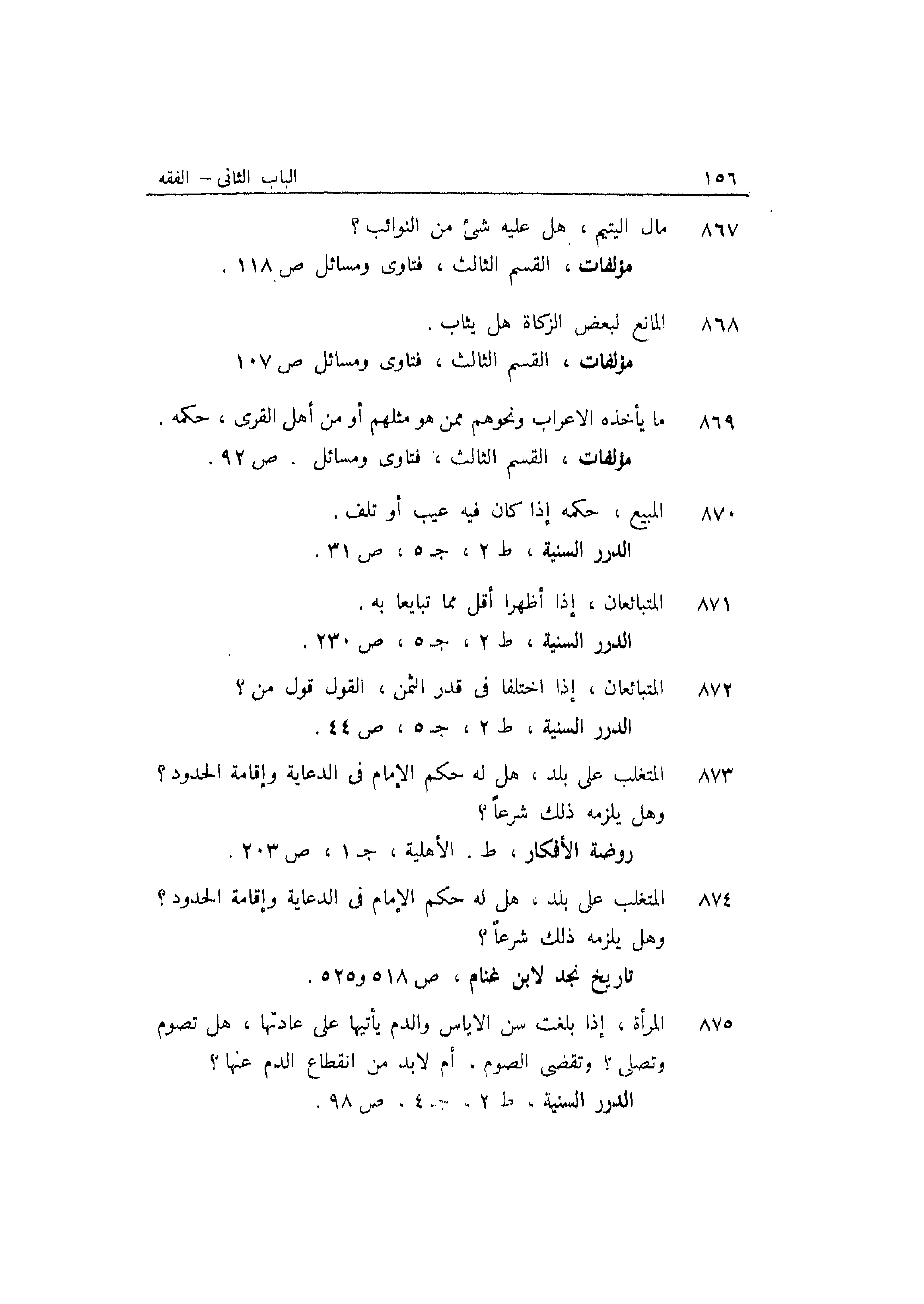 مؤلفات القسم الثالث، فتاوى ومسائل، ص 92.