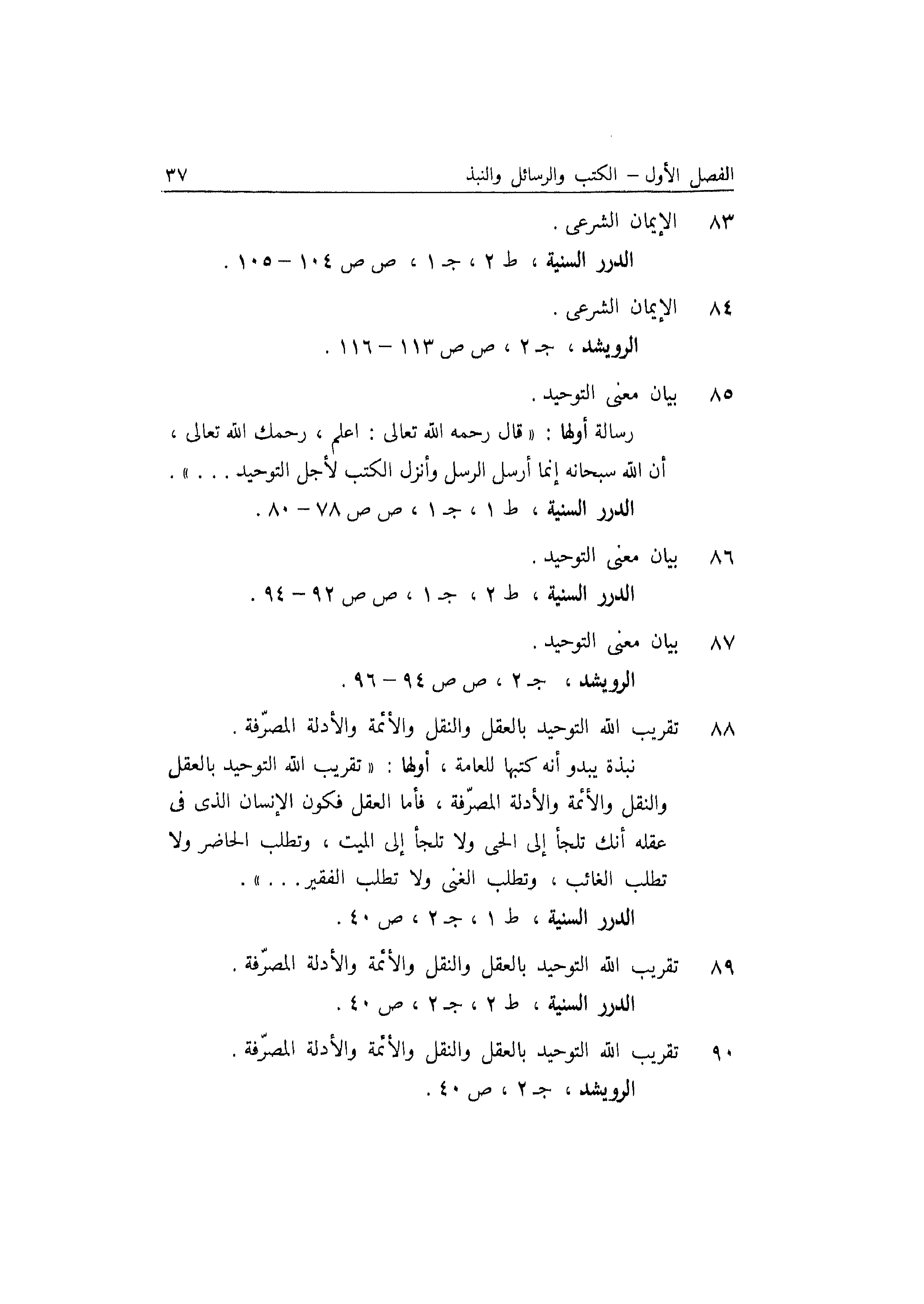 الدرر السنية، ط2، جـ1، ص ص 92-94.