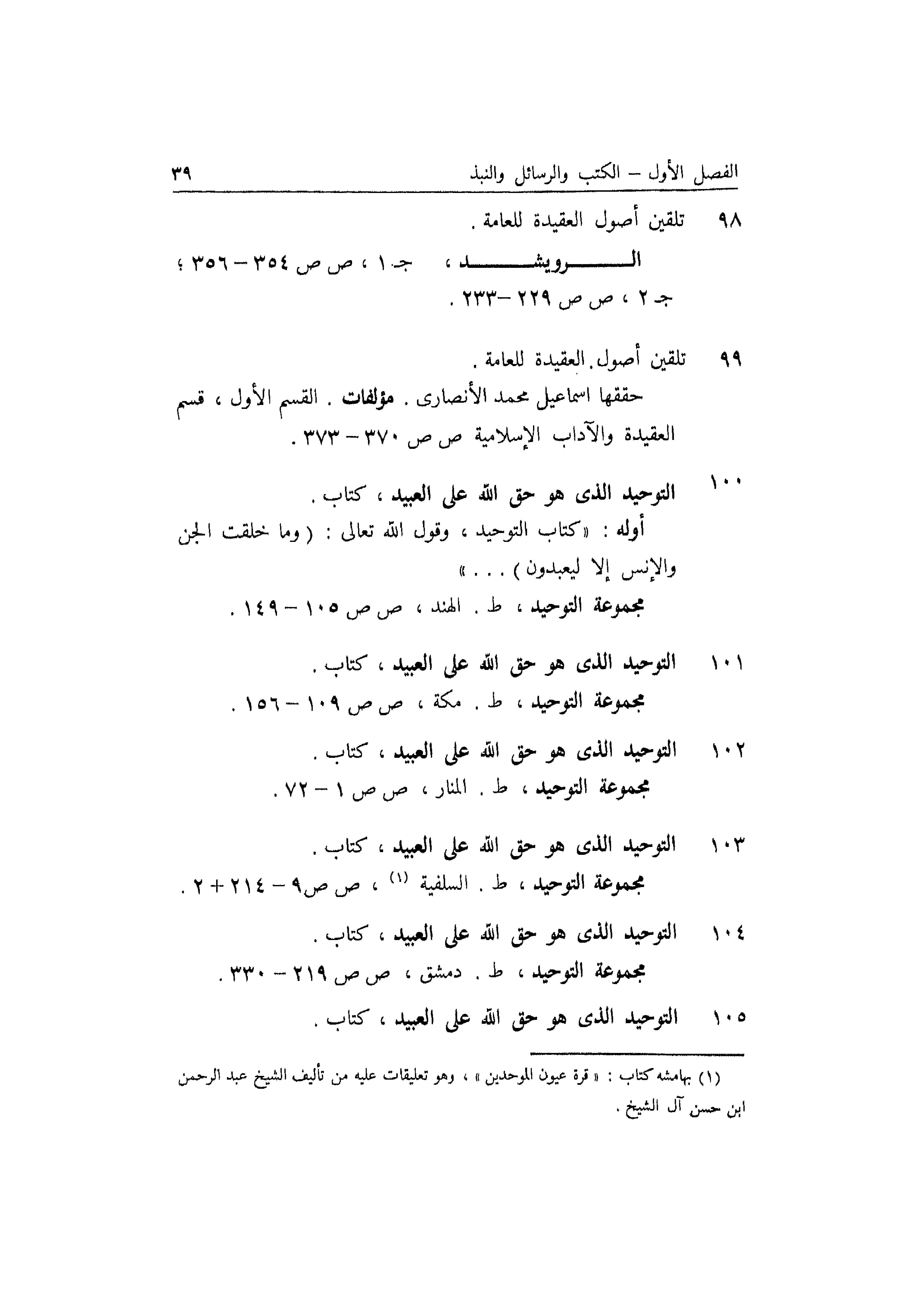 مجموعة التوحيد، ط مكة، ص ص 109-156.