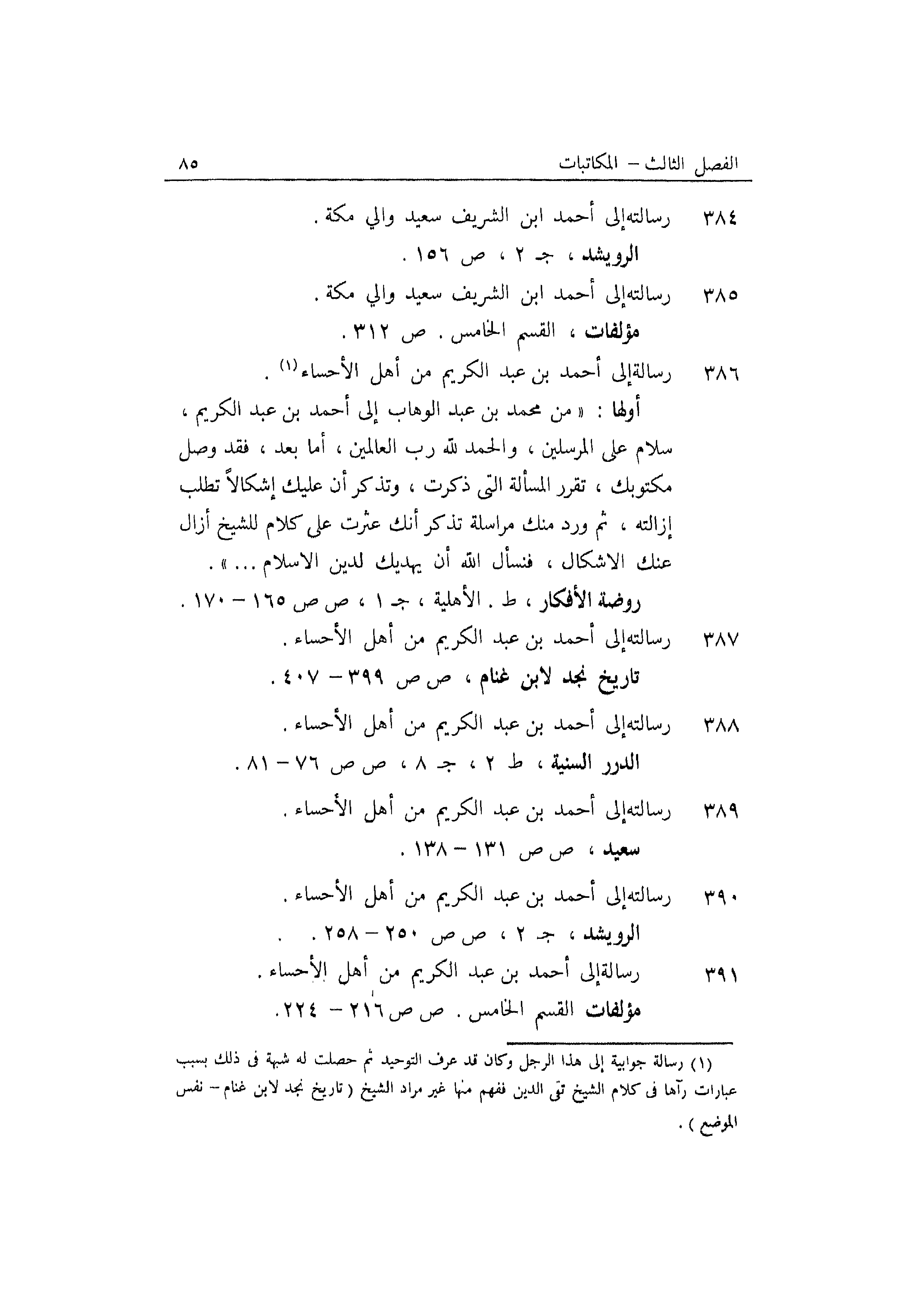 389 رسالته إلى أحمد بن عبد الكريم من أهل الأحساء.