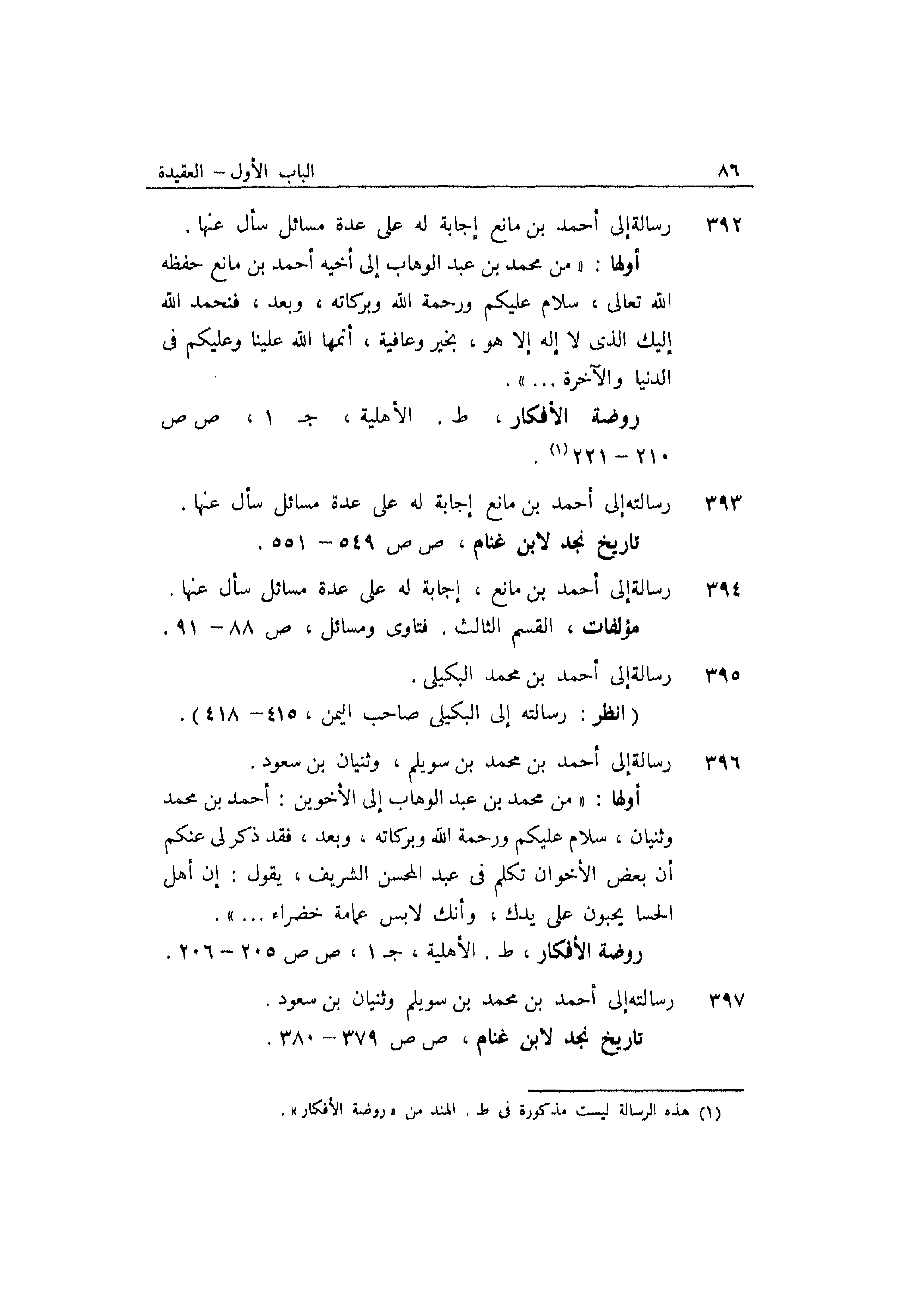396 رسالة إلى أحمد بن محمد بن سويلم وثنيان بن سعود.