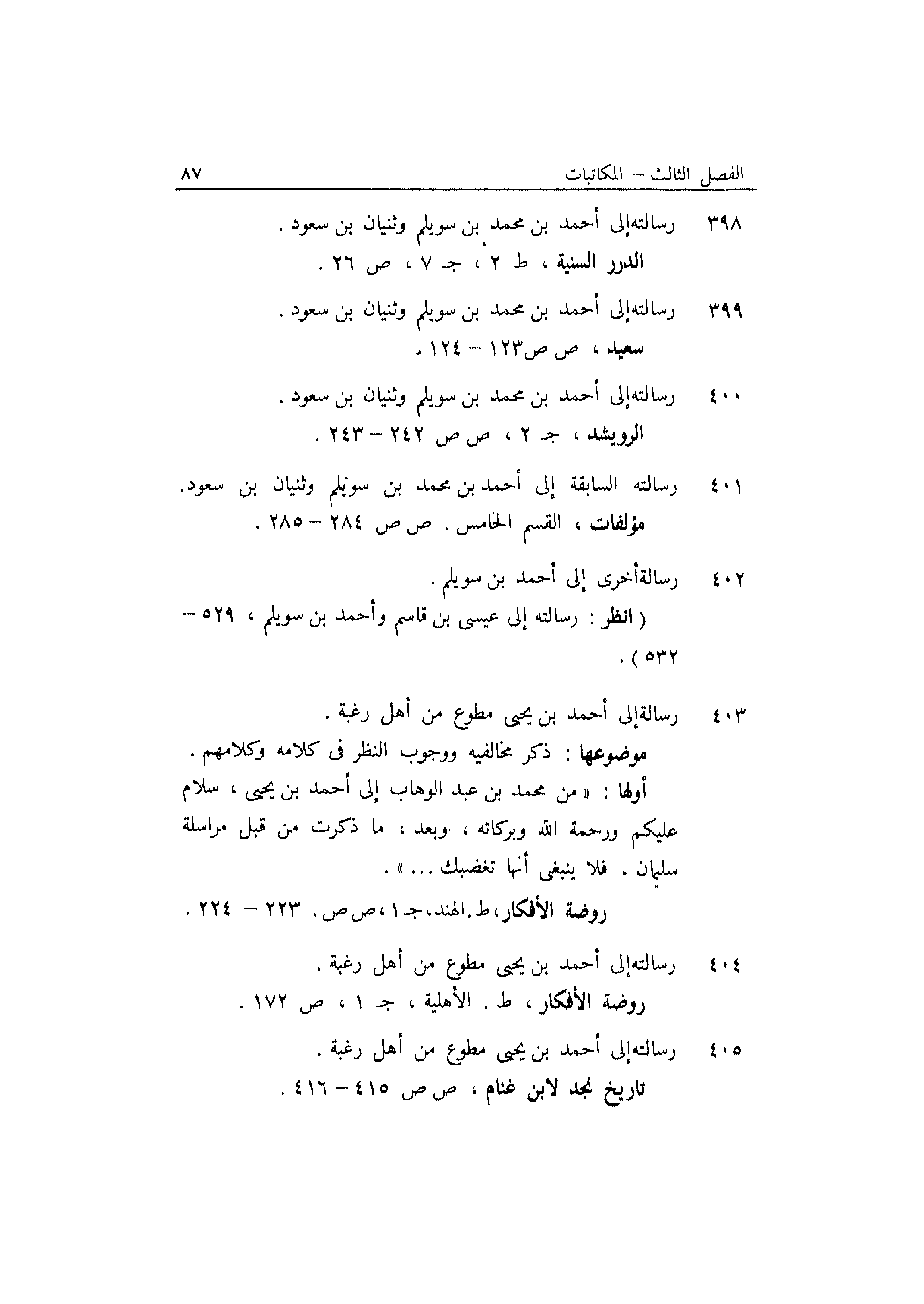 401 رسالته السابقة إلى أحمد بن محمد بن سويلم وثنيان بن سعود.