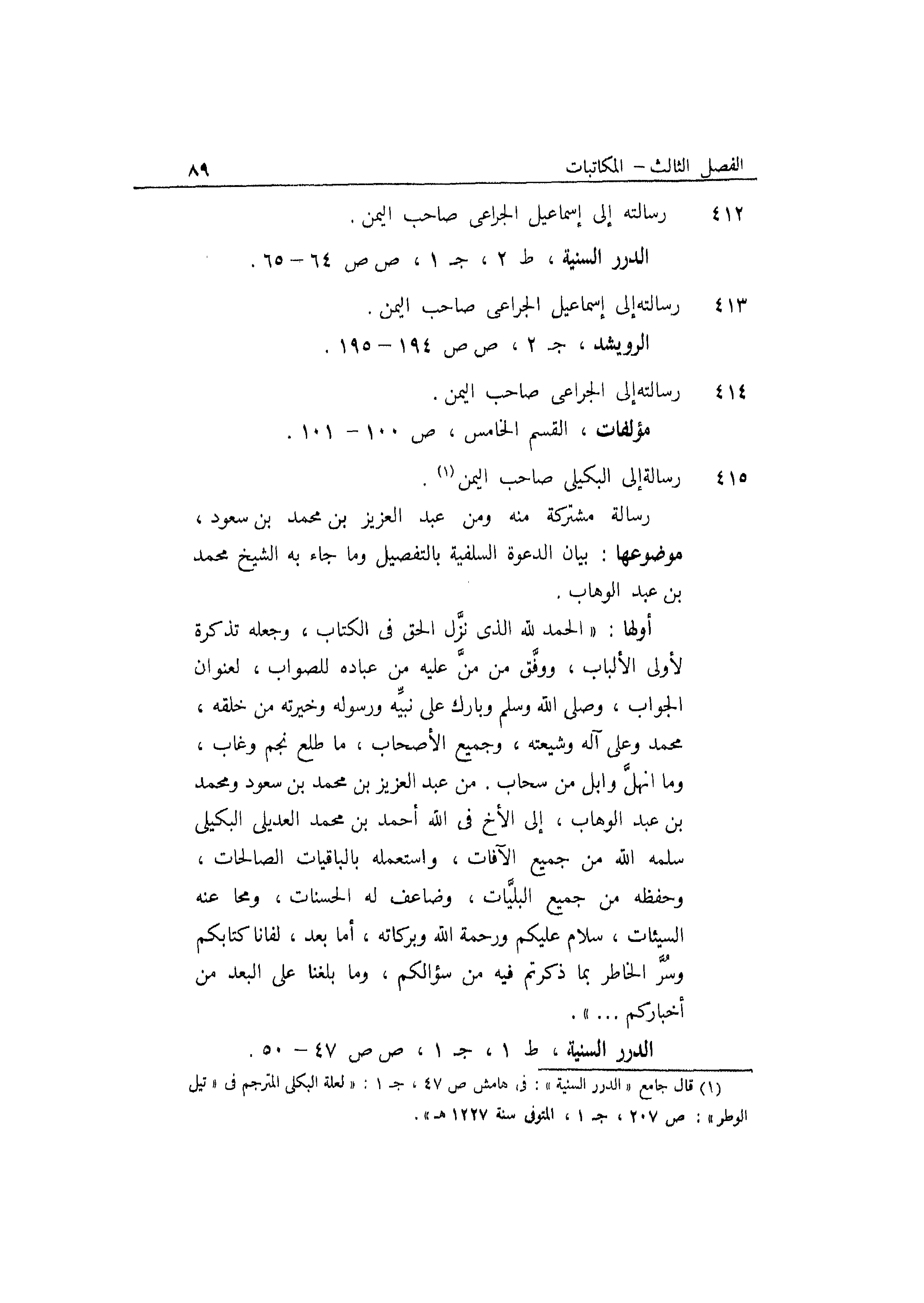 الدرر السنية، ط1، جـ1، ص ص 47-50.