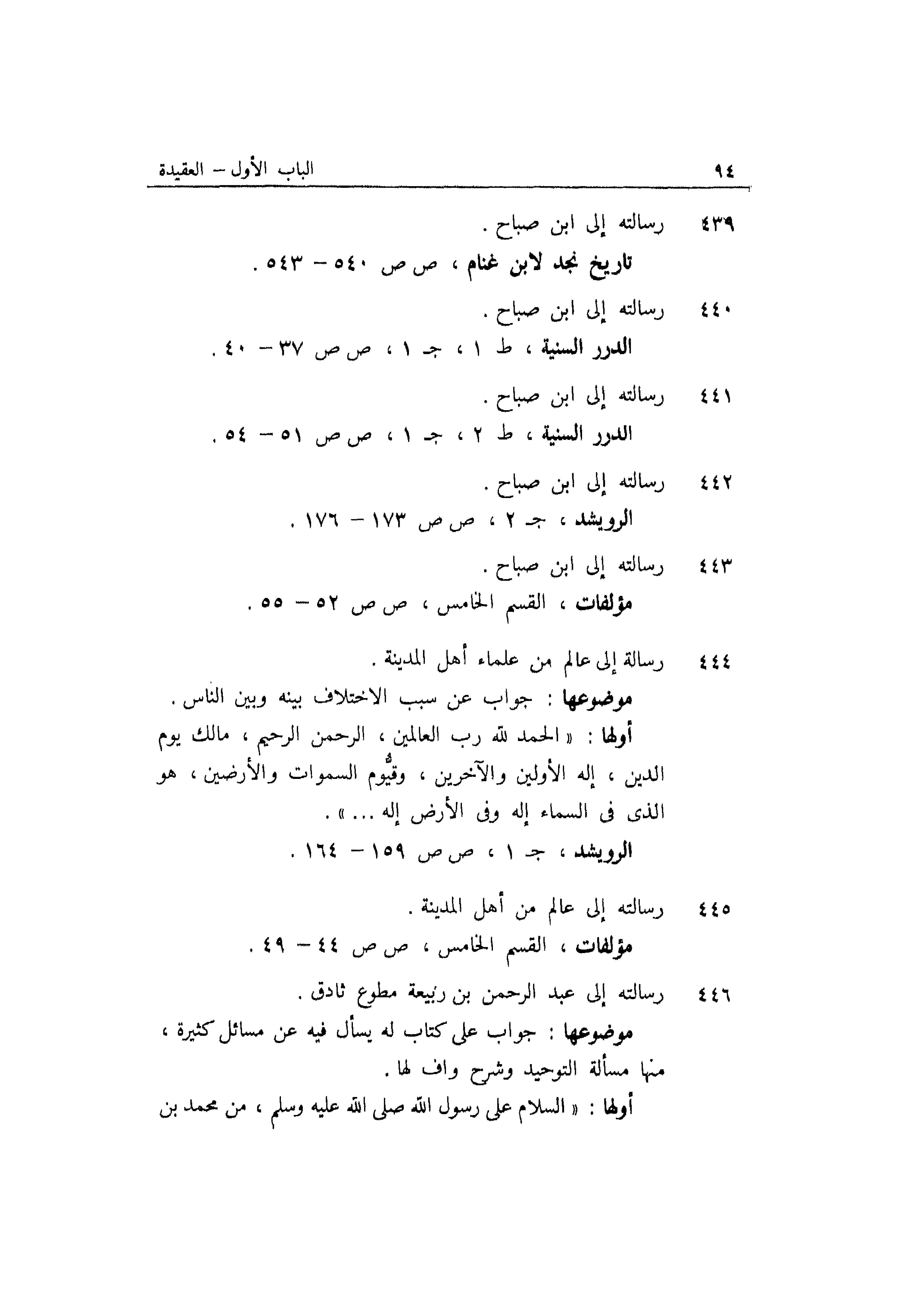 446 رسالته إلى عبد الرحمن بن ربيعة مطوع ثادق.