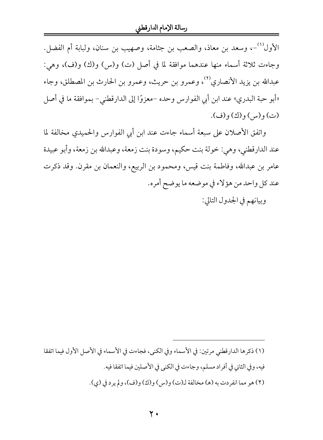 الأول (¬١) -، وسعد بن معاذ، والصعب بن جثامة، وصهيب بن سنان، ولبابة أم الفضل. وجاءت ثلاثة أسماء منها عندهما موافقة لما في أصل (ت) و (س) و (ك) و (ف)، وهي: عبدالله بن يزيد الأنصاري (¬٢)، وعمرو بن حريث، وعمرو بن الحارث بن المصطلق، وجاء «أبو حبة البدري» عند ابن أبي الفوارس وحده -معزوًا إلى الدارقطني- بموافقة ما في أصل (ت) و (س) و (ك) و (ف).
