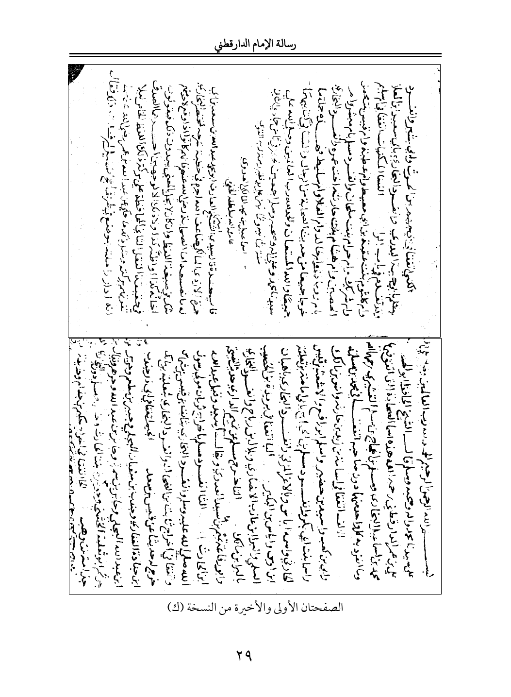 الصفحتان الأولى والأخيرة من النسخة (ك)