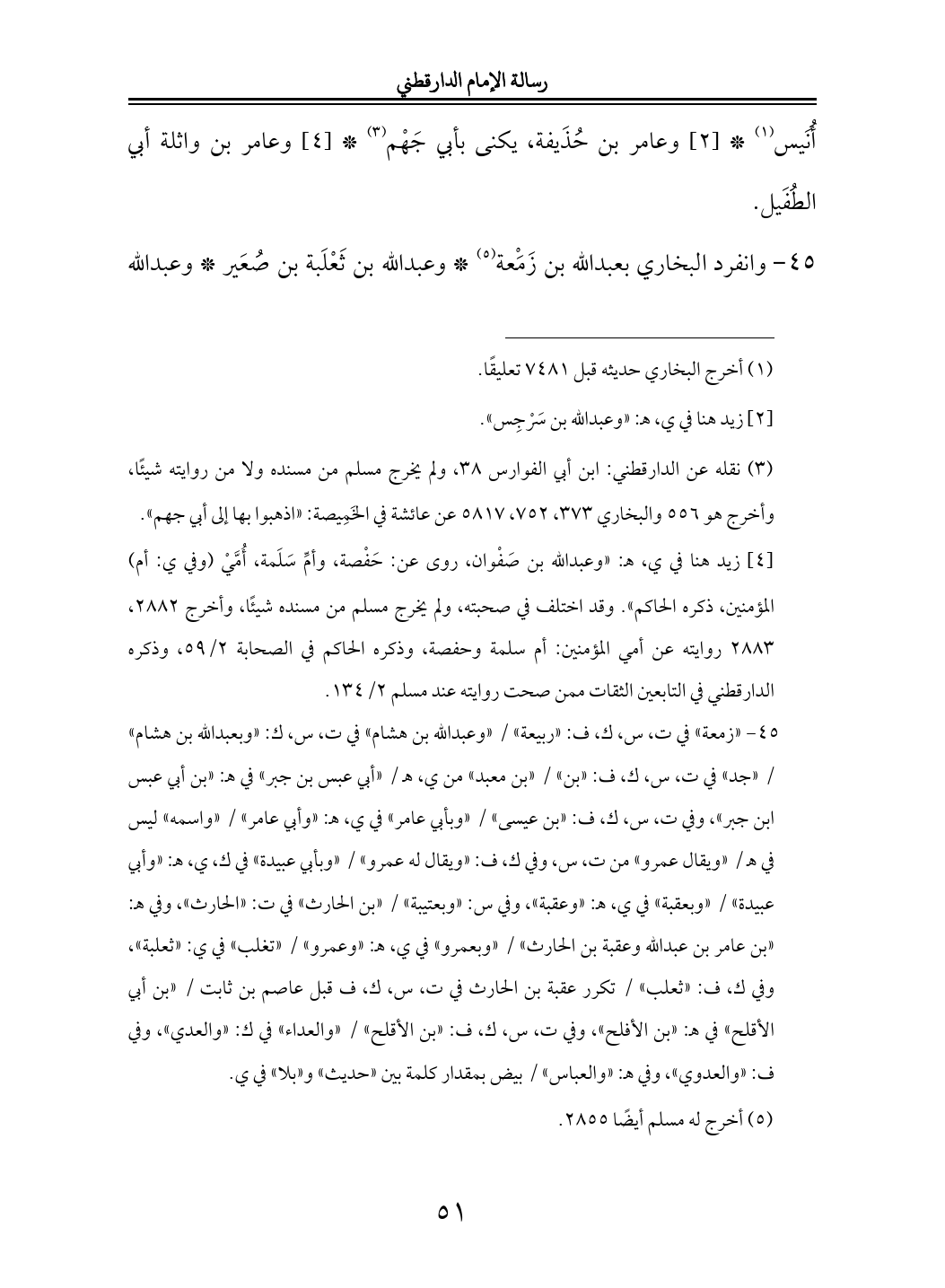 ٤٥ - (¬٥) وانفرد البخاري بعبدالله بن زَمَْعة (¬٦) * وعبدالله بن ثَعْلَبة بن صُعَير * وعبدالله