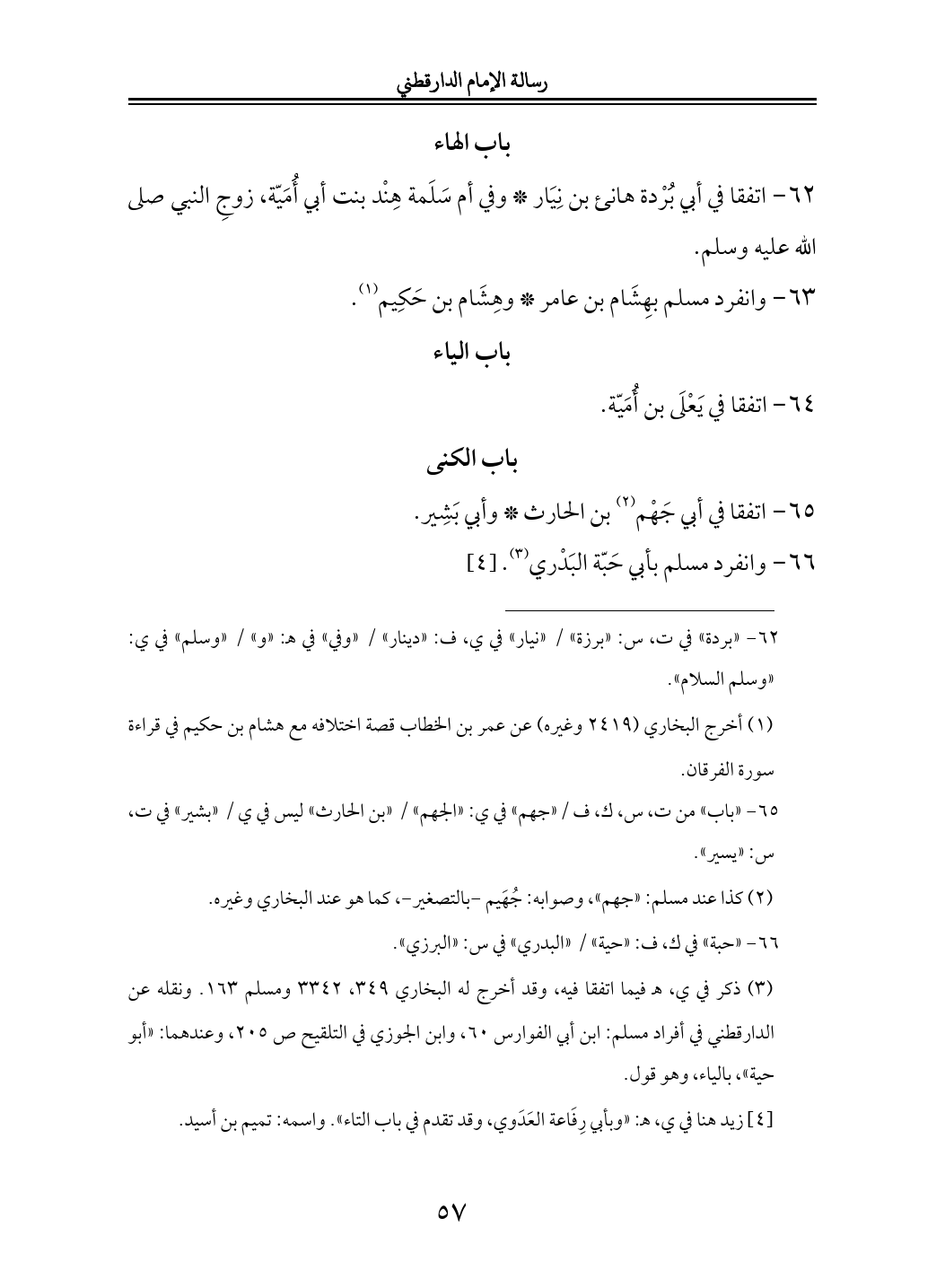(¬٣) ٦٥ - «باب» من ت، س، ك، ف / «جهم» في ي: «الجهم» / «بن الحارث» ليس في ي / «بشير» في ت، س: «يسير».