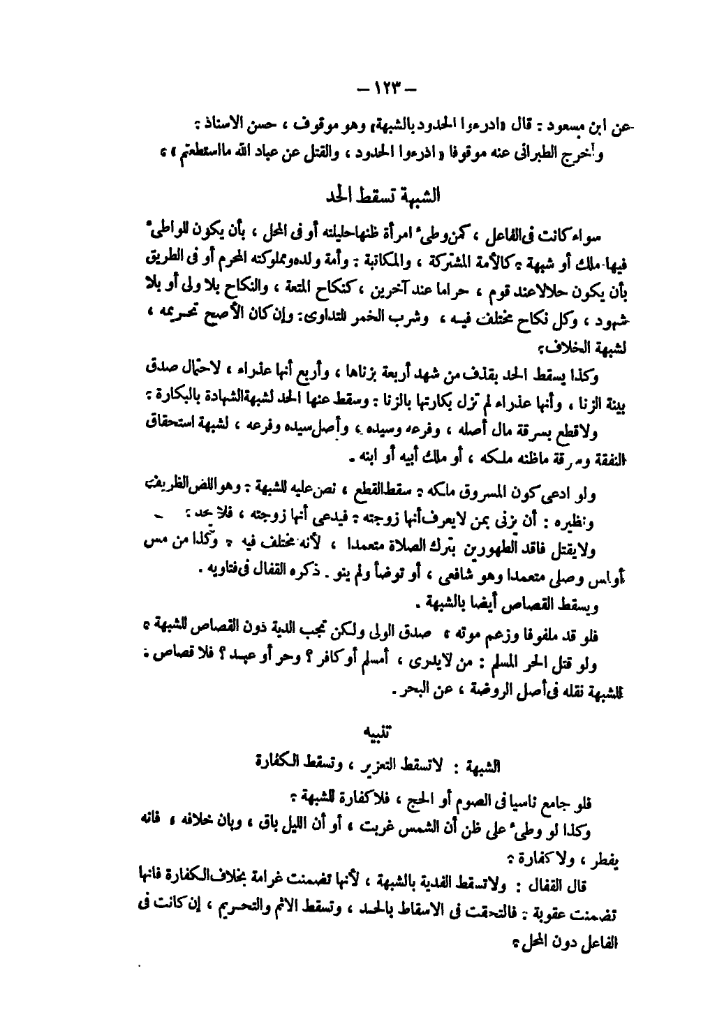 عَنْ ابْنِ مَسْعُودٍ قَالَ " ادْرَءُوا الْحُدُودَ بِالشُّبْهَةِ " وَهُوَ مَوْقُوفٌ، حَسَنُ الْإِسْنَادِ. وَأَخْرَجَ الطَّبَرَانِيُّ عَنْهُ مَوْقُوفًا " ادْرَءُوا الْحُدُودَ، وَالْقَتْلَ عَنْ عِبَادِ اللَّهِ مَا اسْتَطَعْتُمْ ".