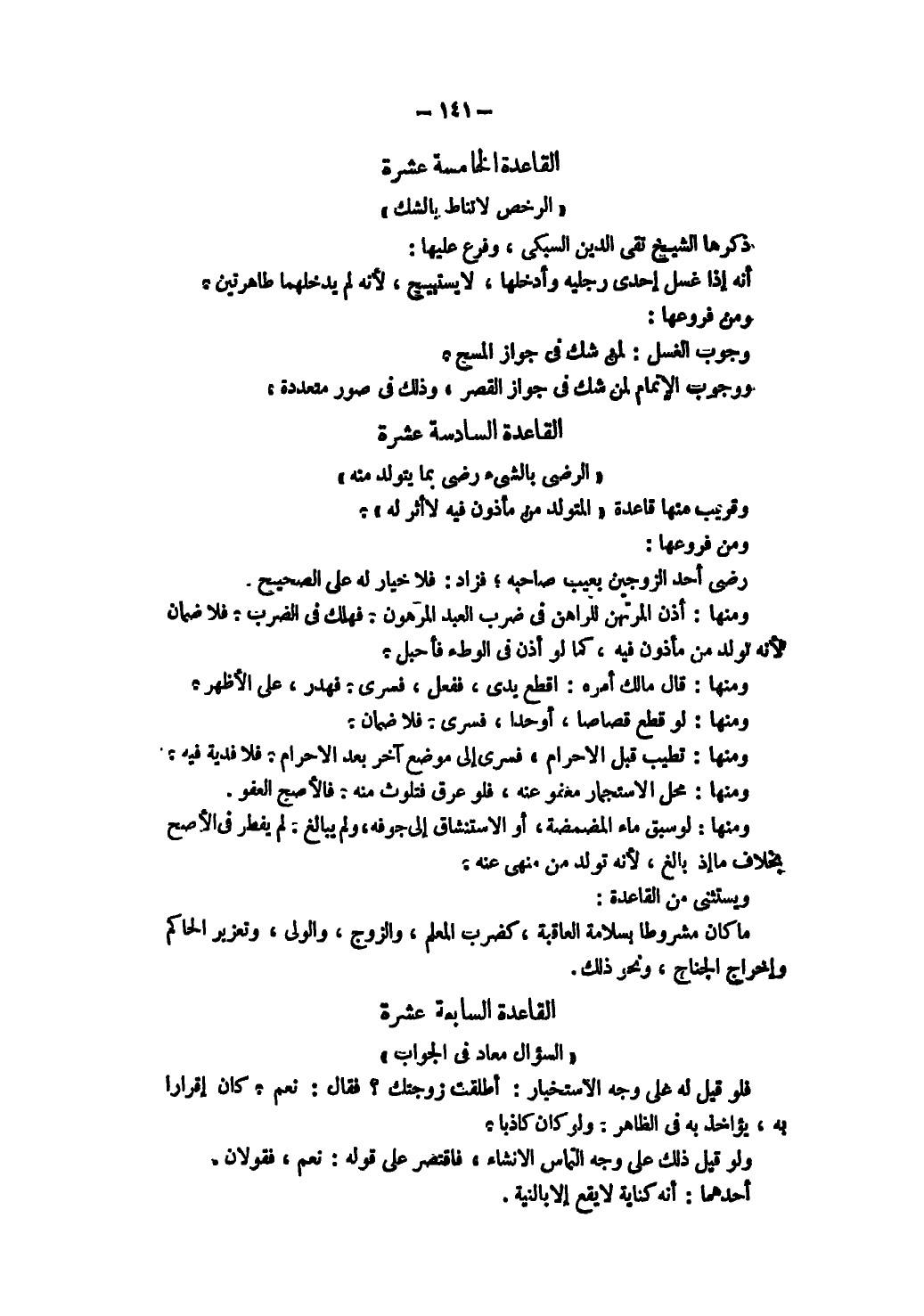 ِّ " ذَكَرَهَا الشَّيْخُ تَقِيُّ الدِّينِ السُّبْكِيُّ وَفَرَّعَ عَلَيْهَا: