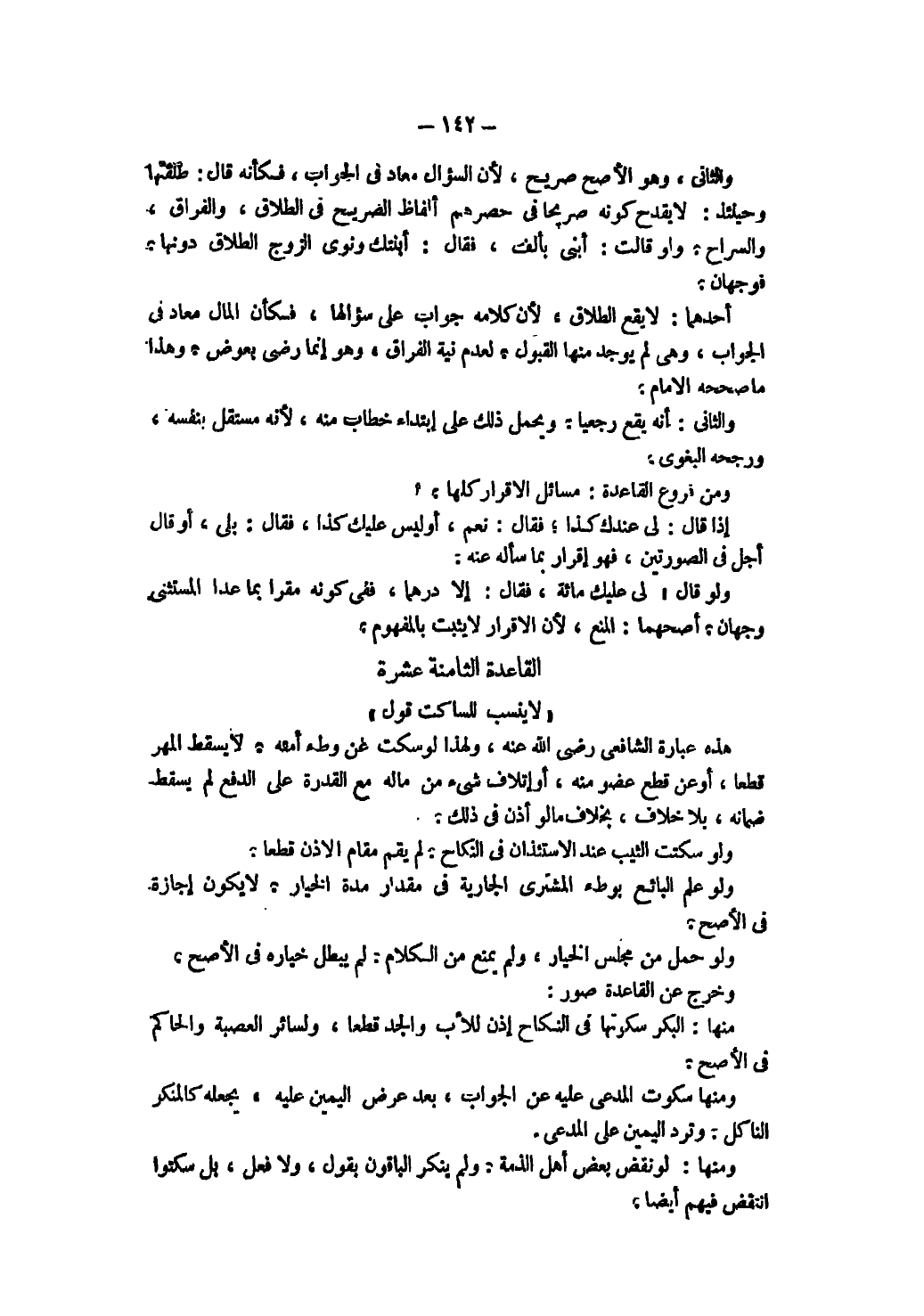 [الْقَاعِدَةُ الثَّامِنَةَ عَشْرَةَ: لَا يُنْسَبُ لِلسَّاكِتِ قَوْلٌ]
