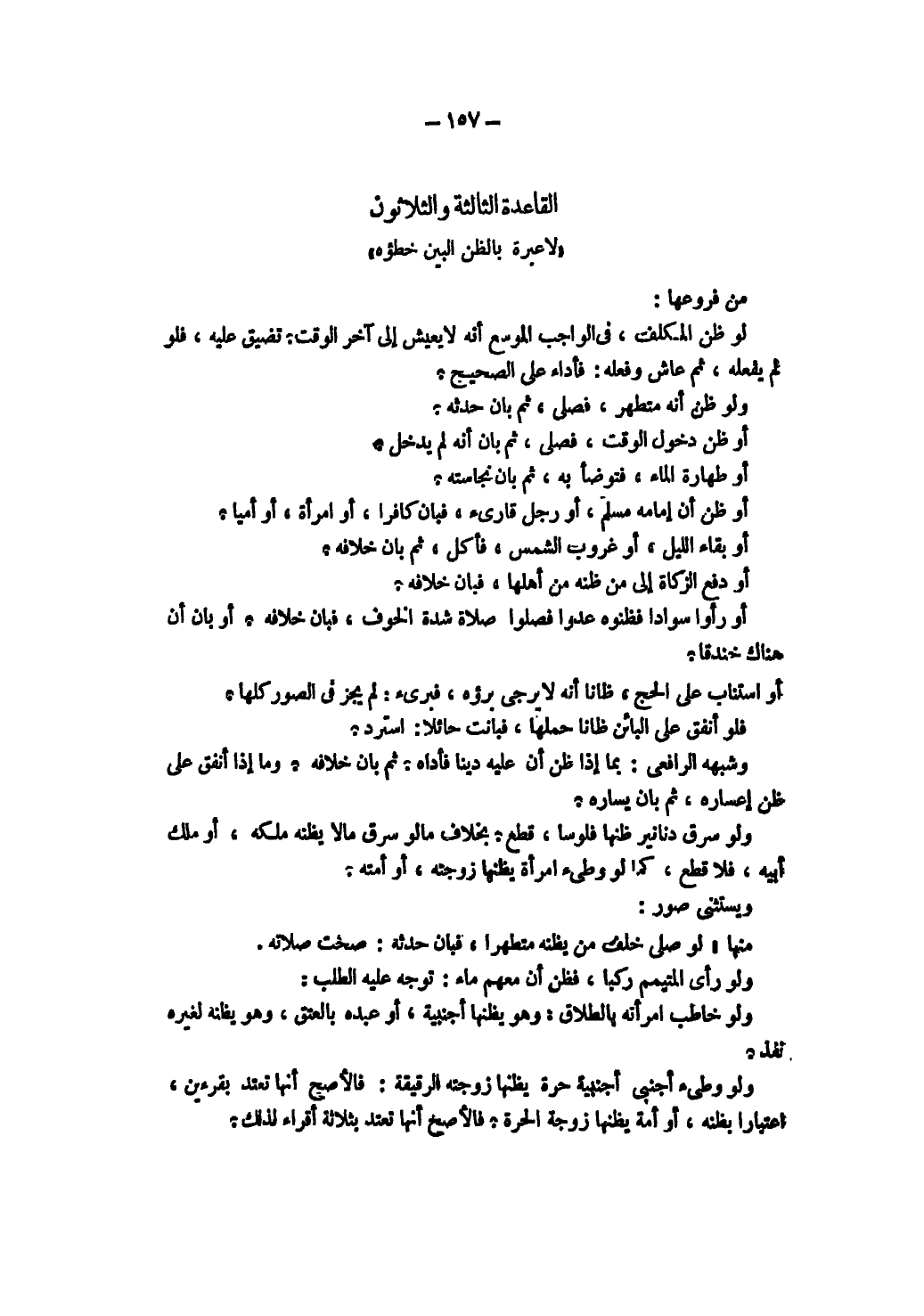 [الْقَاعِدَةُ الثَّالِثَةُ وَالثَّلَاثُونَ: لَا عِبْرَةَ بِالظَّنِّ الْبَيِّنِ خَطَؤُهُ]
