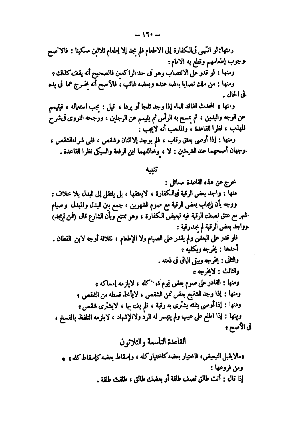 خَرَجَ عَنْ هَذِهِ الْقَاعِدَةِ مَسَائِل: مِنْهَا: وَاجِدُ بَعْضِ الرَّقَبَةِ فِي الْكَفَّارَةِ، لَا يَعْتِقُهَا، بَلْ يَنْتَقِلُ إلَى الْبَدَلِ بِلَا خِلَافٍ.