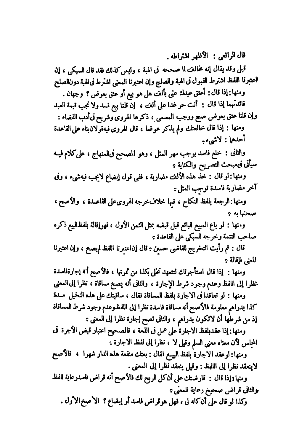 قَالَ: ثُمَّ رَأَيْتُ التَّخْرِيجَ لِلْقَاضِي حُسَيْنٍ. قَالَ: إنْ اعْتَبَرْنَا اللَّفْظَ لَمْ يَصِحَّ، وَإِنْ اعْتَبَرْنَا الْمَعْنَى فَإِقَالَةٌ.