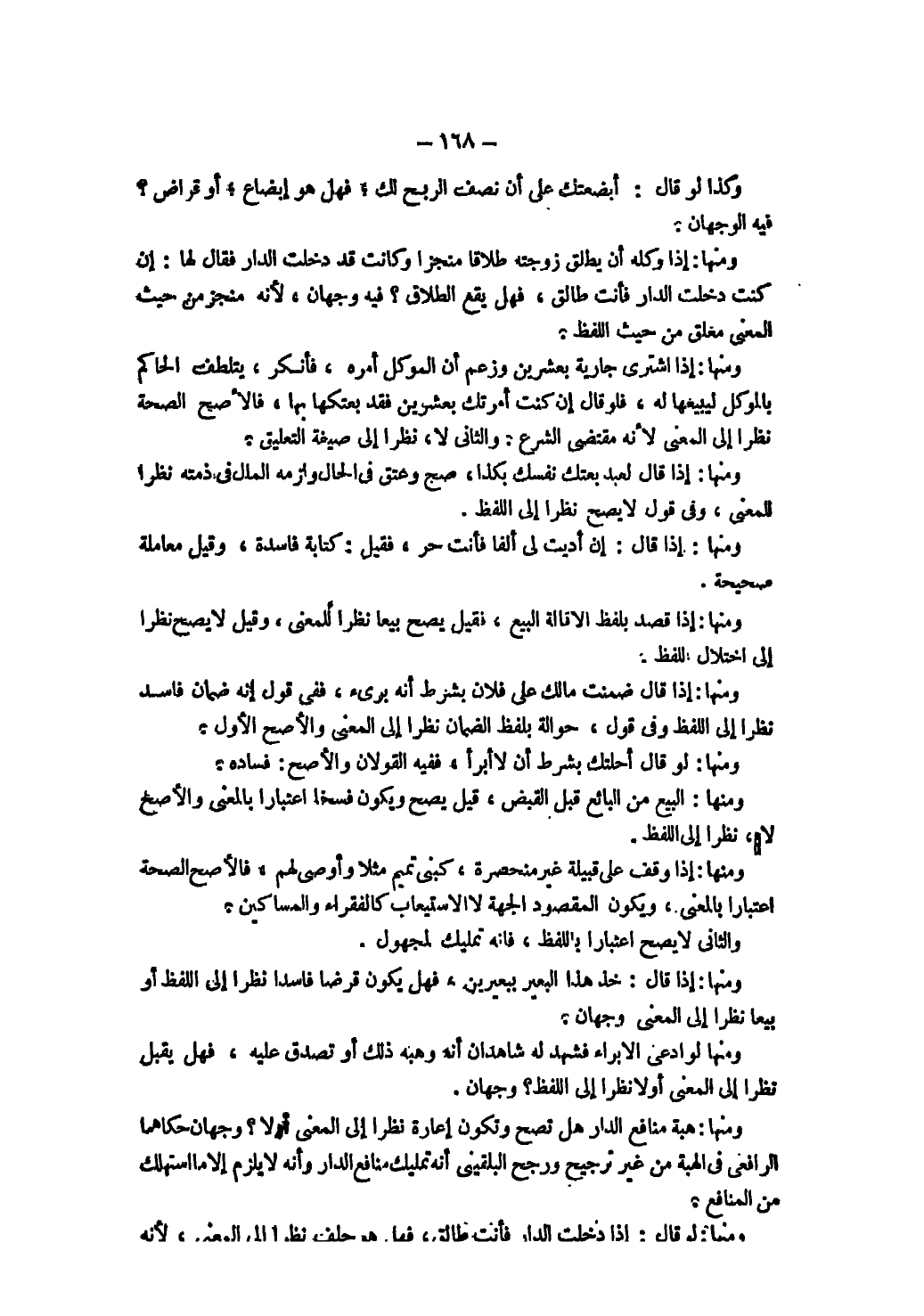 وَمِنْهَا: إذَا قَالَ: إنْ أَدَّيْتَ لِي أَلْفًا فَأَنْتَ حُرٌّ، فَقِيلَ: كِتَابَةٌ فَاسِدَةٌ، وَقِيلَ مُعَامَلَةٌ صَحِيحَةٌ. وَمِنْهَا: إذَا قَصَدَ بِلَفْظِ الْإِقَالَةِ الْبَيْعَ، فَقِيلَ يَصِحُّ بَيْعًا نَظَرًا لِلْمَعْنَى، وَقِيلَ لَا يَصِحُّ نَظَرًا إلَى اخْتِلَال اللَّفْظِ.