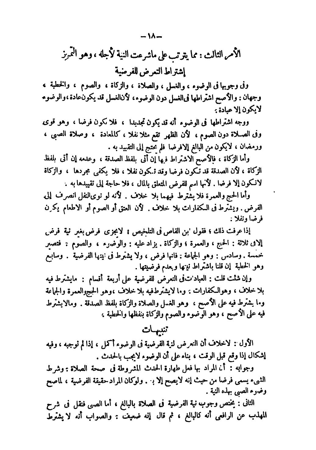 الثَّانِي: يَخْتَصّ وُجُوب نِيَّة الْفَرْضِيَّة فِي الصَّلَاة بِالْبَالِغِ، أَمَّا الصَّبِيّ فَنَقَلَ فِي شَرْحِ الْمُهَذَّبِ عَنْ الرَّافِعِيّ أَنَّهُ كَالْبَالِغِ، ثُمَّ قَالَ إنَّهُ ضَعِيف وَالصَّوَاب أَنَّهُ لَا يُشْتَرَط
