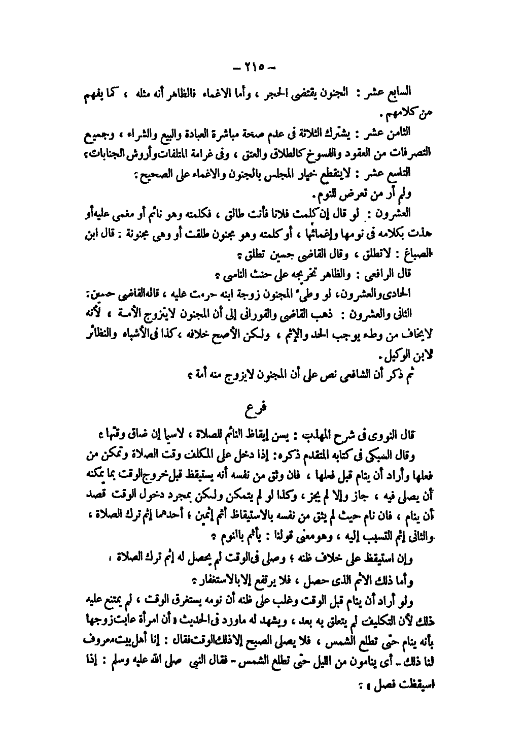 الْعِشْرُونَ: لَوْ قَالَ إنْ كَلَّمْت فُلَانًا فَأَنْتِ طَالِقٌ، فَكَلَّمَتْهُ وَهُوَ نَائِمٌ أَوْ مُغْمًى عَلَيْهِ أَوْ هَذَتْ بِكَلَامِهِ فِي نَوْمِهَا وَإِغْمَائِهَا، أَوْ كَلَّمَتْهُ وَهُوَ مَجْنُونٌ طَلُقَتْ أَوْ وَهِيَ مَجْنُونَةٌ ; قَالَ ابْنُ الصَّبَّاغِ: لَا تَطْلُقُ، وَقَالَ الْقَاضِي حُسَيْنٌ: تَطْلُقُ قَالَ الرَّافِعِيُّ: وَالظَّاهِرُ تَخْرِيجُهُ عَلَى حِنْثِ النَّاسِي.