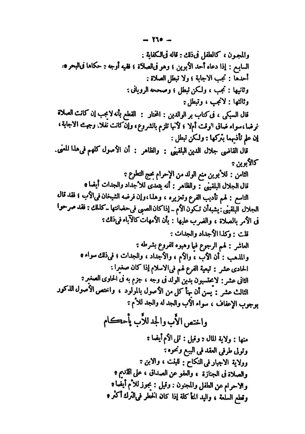 التَّاسِعُ: لَهُمْ تَأْدِيبُ الْفَرْعِ وَتَعْزِيرُهُ، وَهَذَا، وَإِنْ فَرَضَهُ الشَّيْخَانِ فِي الْأَبِ، فَقَدْ قَالَ الْجَلَالُ الْبُلْقِينِيُّ: يُشْبِهُ أَنْ تَكُونَ الْأُمُّ - إذَا كَانَ الصَّبِيُّ فِي حَضَانَتِهَا كَذَلِكَ، فَقَدْ صَرَّحُوا فِي الْأَمْرِ بِالصَّلَاةِ، وَالضَّرْبِ عَلَيْهَا: بِأَنَّ الْأُمَّهَاتِ كَالْآبَاءِ فِي ذَلِكَ. قُلْت: وَكَذَا الْأَجْدَادُ وَالْجَدَّاتُ.