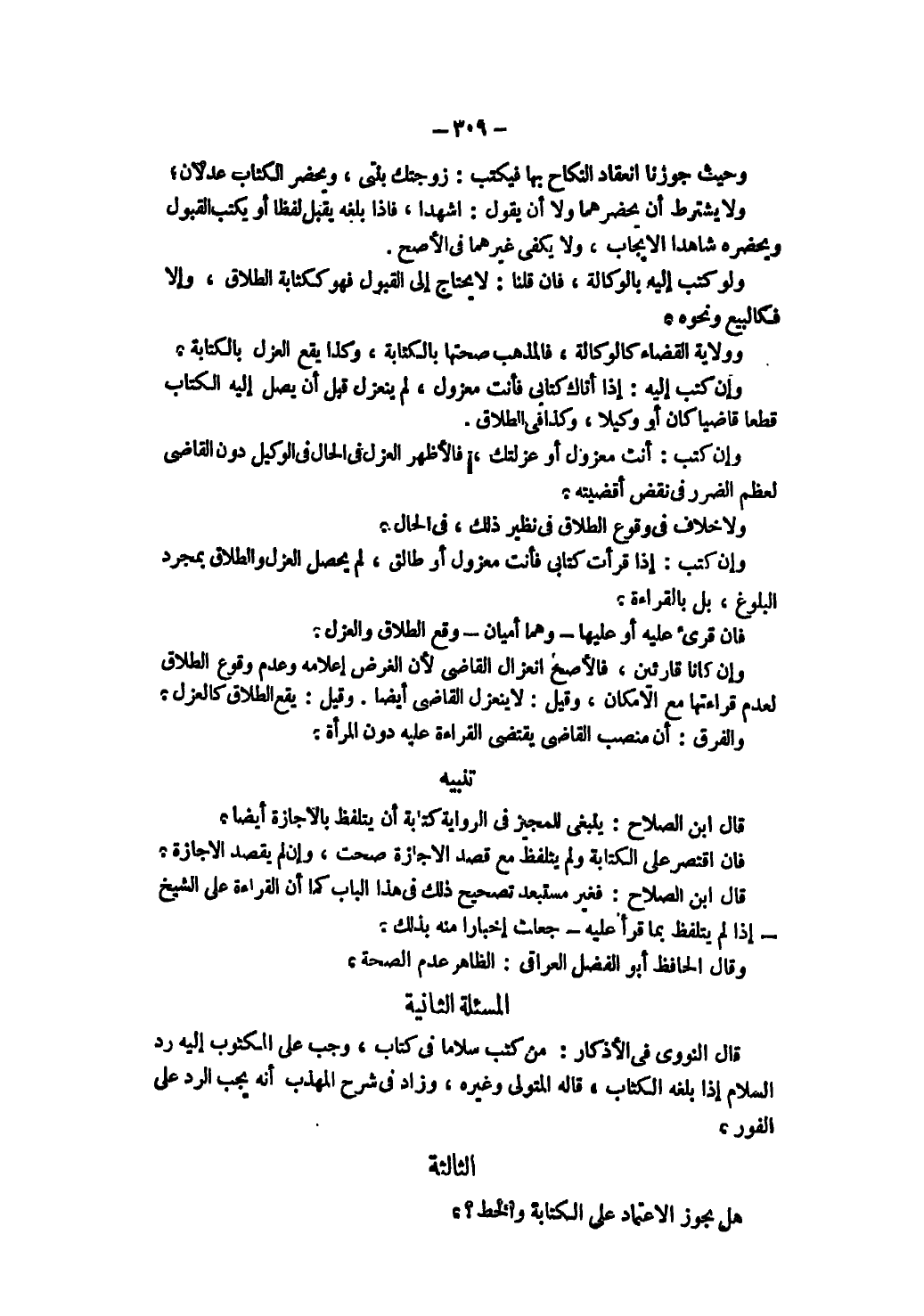 الثَّالِثَةُ هَلْ يَجُوزُ الِاعْتِمَادُ عَلَى الْكِتَابَةِ وَالْخَطِّ؟