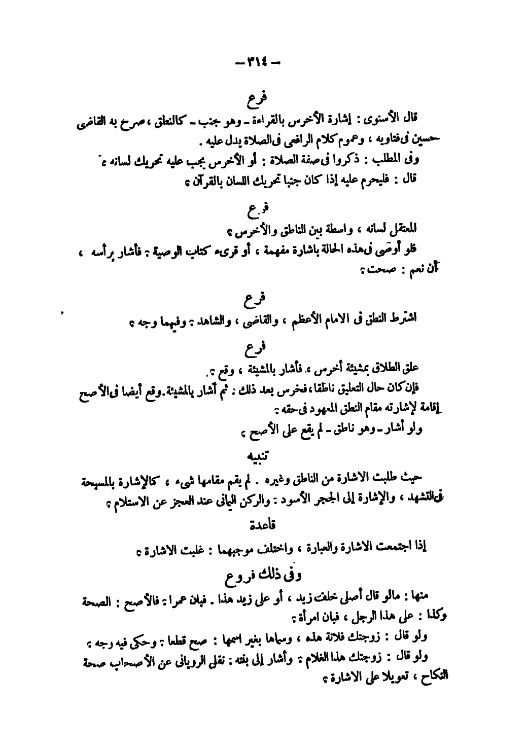 فَرْعٌ اُشْتُرِطَ النُّطْقُ فِي الْإِمَامِ الْأَعْظَمِ، وَالْقَاضِي، وَالشَّاهِدِ. وَفِيهِمَا وَجْهٌ. فَرْعٌ عُلِّقَ الطَّلَاقُ بِمَشِيئَةِ أَخْرَسَ، فَأَشَارَ بِالْمَشِيئَةِ، وَقَعَ، فَإِنْ كَانَ حَالَ التَّعْلِيقِ نَاطِقًا، فَخَرِسَ بَعْد ذَلِكَ. ثَمَّ أَشَارَ بِالْمَشِيئَةِ. وَقَعَ أَيْضًا فِي الْأَصَحِّ إقَامَةً لِإِشَارَتِهِ مَقَامَ النُّطْقِ الْمَعْهُودِ فِي حَقِّهِ.