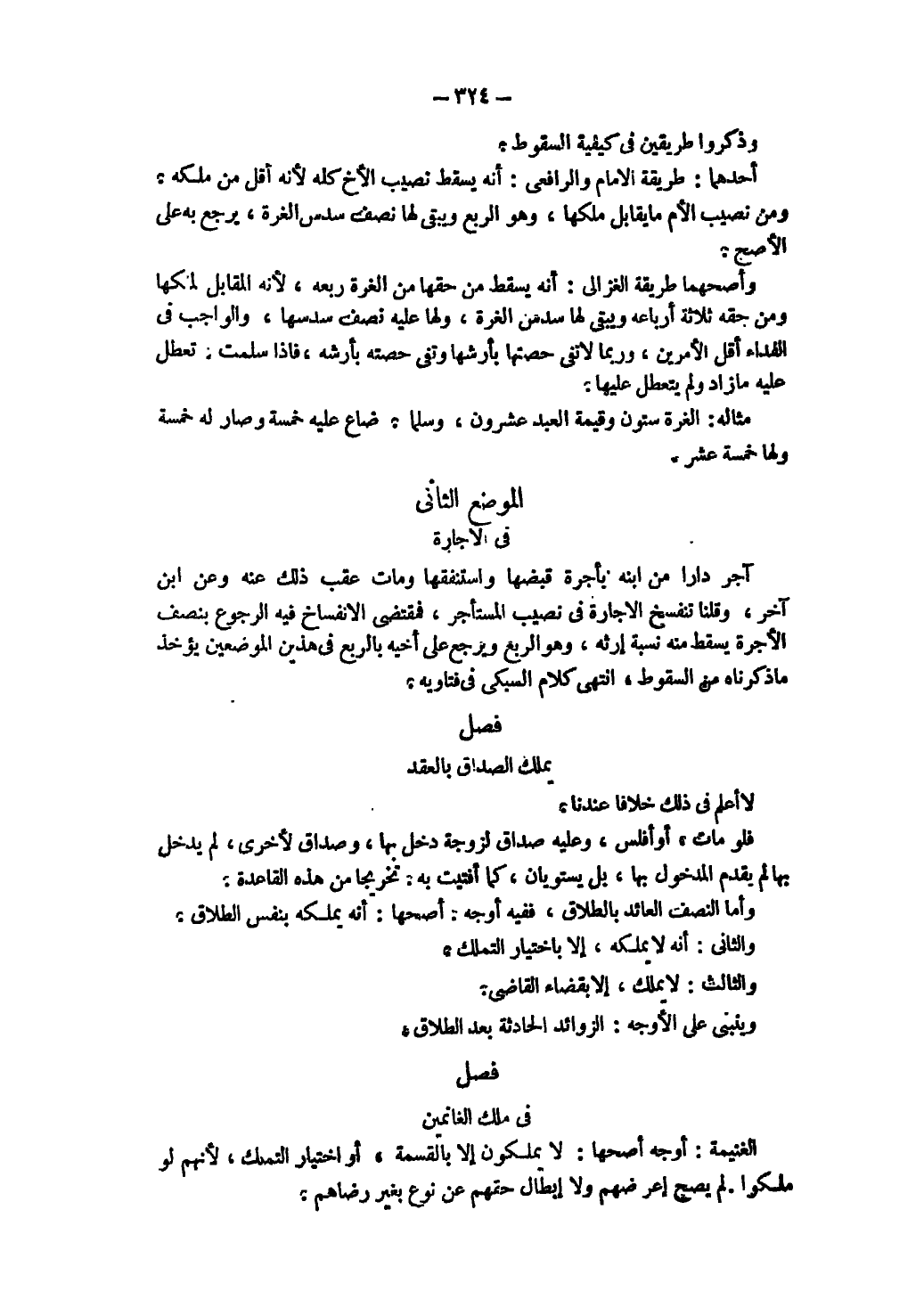 فَصْلٌ فِي مِلْكِ الْغَانِمِينَ الْغَنِيمَةَ: أَوْجُهٌ أَصَحُّهَا: لَا يَمْلِكُونَ إلَّا بِالْقِسْمَةِ " أَوْ اخْتِيَارِ التَّمَلُّكِ ; لِأَنَّهُمْ لَوْ مَلَكُوا. لَمْ يَصِحَّ إعْرَاضُهُمْ وَلَا إبْطَالُ حَقِّهِمْ عَنْ نَوْعٍ بِغَيْرِ رِضَاهُمْ