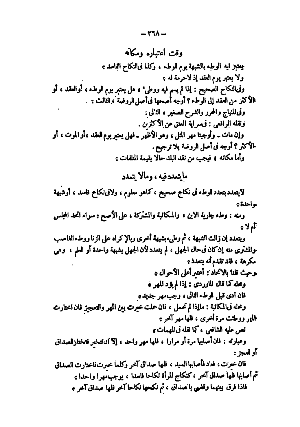 وَقْتَ اعْتِبَارِهِ وَمَكَانِهِ يُعْتَبَرُ فِيهِ الْوَطْءُ بِالشُّبْهَةِ يَوْمَ الْوَطْءِ، وَكَذَا فِي النِّكَاحِ الْفَاسِدِ وَلَا يُعْتَبَرُ يَوْمُ الْعَقْدِ إذْ لَا حُرْمَةَ لَهُ وَفِي النِّكَاحِ الصَّحِيحِ: إذَا لَمْ يُسَمِّ فِيهِ وَوَطِئَ، هَلْ يُعْتَبَرُ يَوْمُ الْوَطْءِ، أَوْ الْعَقْدِ، أَوْ الْأَكْثَرِ مِنْ الْعَقْدِ إلَى الْوَطْءِ؟ أَوْجُهٌ أَصَحُّهَا فِي أَصْلِ الرَّوْضَةِ، الثَّالِثِ وَفِي الْمِنْهَاجِ وَالْمُحَرَّرِ وَالشَّرْحِ الصَّغِيرِ.
