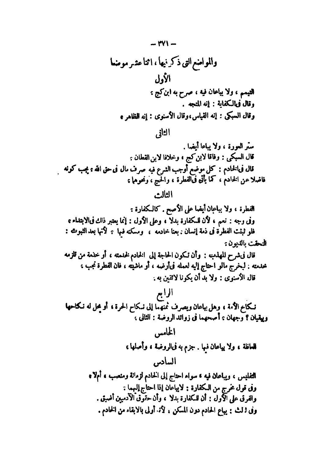 وَالْمَوَاضِعُ الَّتِي ذُكِرَ فِيهَا اثْنَا عَشْرَ مَوْضِعًا الْأَوَّلُ التَّيَمُّمُ وَلَا يُبَاعَانِ فِيهِ، صَرَّحَ بِهِ ابْنُ كَجٍّ. وَقَالَ فِي الْكِفَايَةِ: إنَّهُ الْمُتَّجِهُ وَقَالَ السُّبْكِيُّ: إنَّهُ الْقِيَاسُ، وَقَالَ الْإِسْنَوِيُّ: إنَّهُ الظَّاهِرُ.