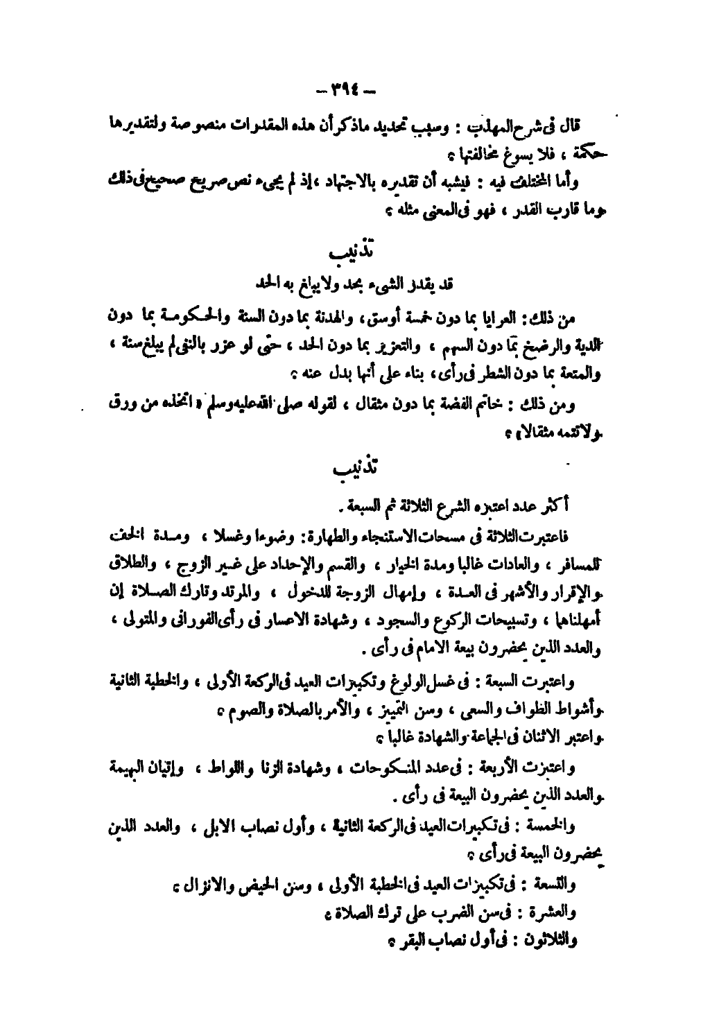 قَدْ يُقَدَّرُ الشَّيْءُ بِحَدٍّ وَلَا يَبْلُغُ بِهِ الْحَدُّ: مِنْ ذَلِكَ: الْعَرَايَا بِمَا دُونَ خَمْسَةِ أَوْسُقٍ، وَالْهُدْنَةُ بِمَا دُونِ السَّنَةِ، وَالْحُكُومَةُ بِمَا دُونِ الدِّيَةِ، وَالرَّضْخُ بِمَا دُونِ السَّهْمِ، وَالتَّعْزِيرُ بِمَا دُونِ الْحَدِّ، حَتَّى لَوْ عَزَّرَ بِالنَّفْيِ لَمْ يَبْلُغْ سَنَةً، وَالْمُتْعَةُ بِمَا دُونِ الشَّطْرِ فِي رَأْيٍ، بِنَاءً عَلَى أَنَّهَا بَدَلٌ عَنْهُ وَمِنْ ذَلِكَ: خَاتَمُ الْفِضَّةِ بِمَا دُونِ مِثْقَالٍ، لِقَوْلِهِ صَلَّى اللَّهُ عَلَيْهِ وَسَلَّمَ «اتَّخِذْهُ مِنْ وَرِقٍ وَلَا تُتِمُّهُ مِثْقَالًا» .