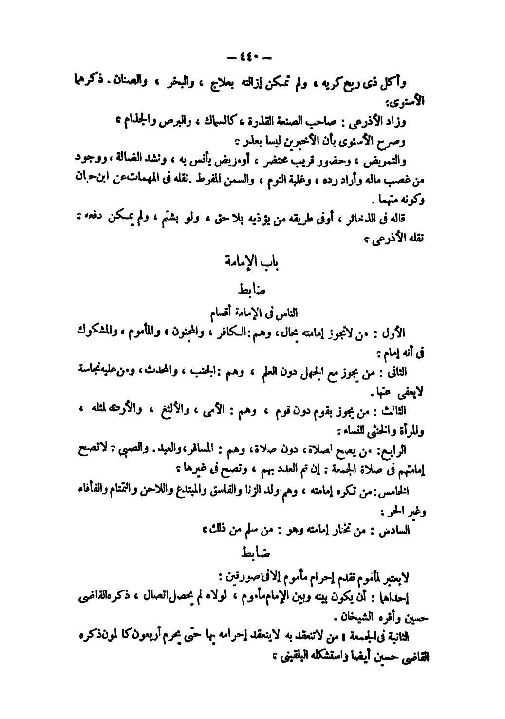 ضَابِطٌ: النَّاسُ فِي الْإِمَامَةِ أَقْسَامٌ الْأَوَّلُ: مَنْ لَا تَجُوزُ إمَامَتُهُ بِحَالٍ وَهُمْ: الْكَافِرُ وَالْمَجْنُونُ وَالْمَأْمُومُ وَالْمَشْكُوكُ فِي أَنَّهُ إمَامٌ.