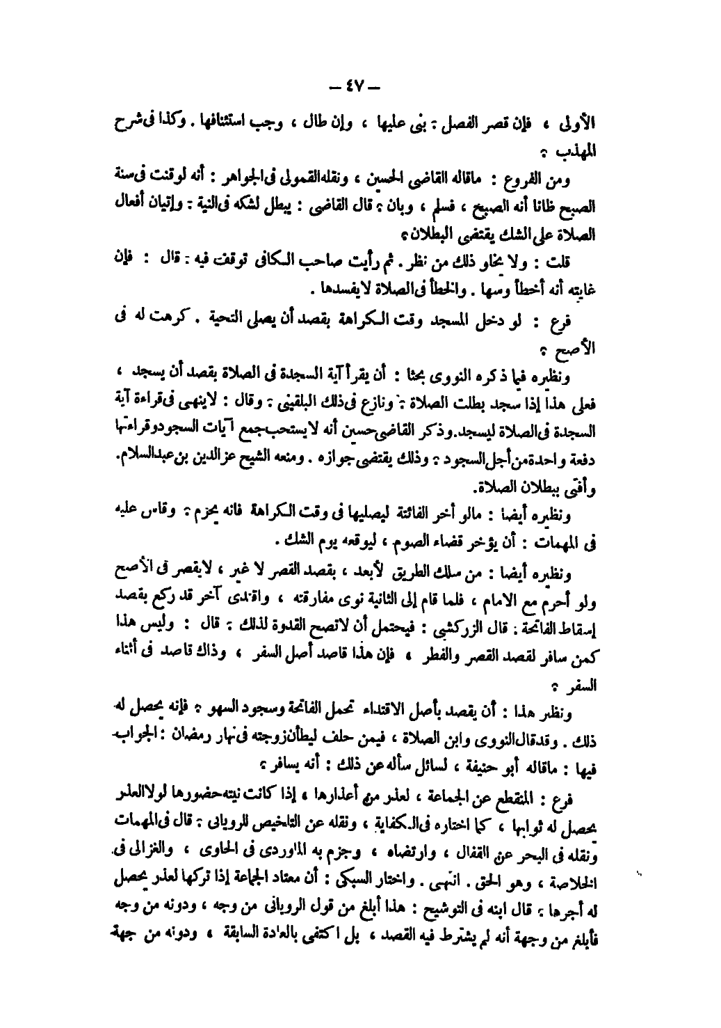 وَمِنْ الْفُرُوعِ: مَا قَالَهُ الْقَاضِي الْحُسَيْنُ، وَنَقَلَهُ الْقَمُولِيُّ فِي الْجَوَاهِرِ: أَنَّهُ لَوْ قَنَتَ فِي سُنَّةِ الصُّبْحِ ظَانًّا أَنَّهُ الصُّبْحُ، فَسَلَّمَ وَبَانَ. قَالَ الْقَاضِي: يَبْطُلُ لِشَكِّهِ فِي النِّيَّةِ، وَإِتْيَانُ أَفْعَالِ الصَّلَاة عَلَى الشَّكِّ يَقْتَضِي الْبُطْلَانَ.